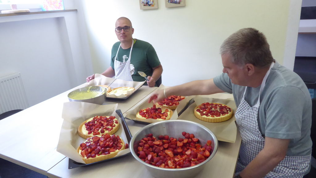 Im Anschluss wird dann Erdbeerkuchen für die gesamte Einrichtung gebacken und in der Pause vernascht!