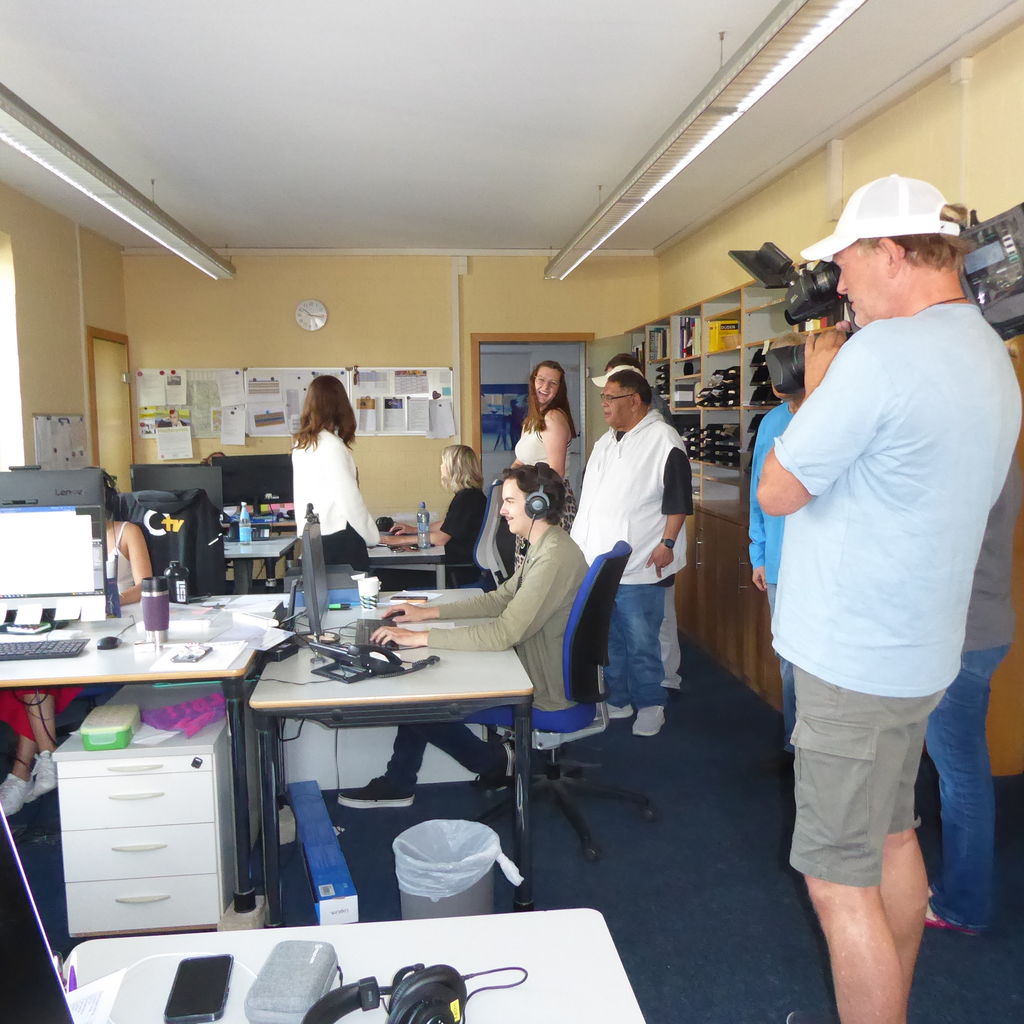 Ralf hat dieses Jahr vorgeschlagen, dass wir im Veranstaltungskalender doch mal unseren Regionalsender OTV besuchen könntenEs hat tatsächlich geklappt: wir konnten uns die Redaktion, den Schneideraum, die Regie und natürlich auch das Sendestudio anschauen.