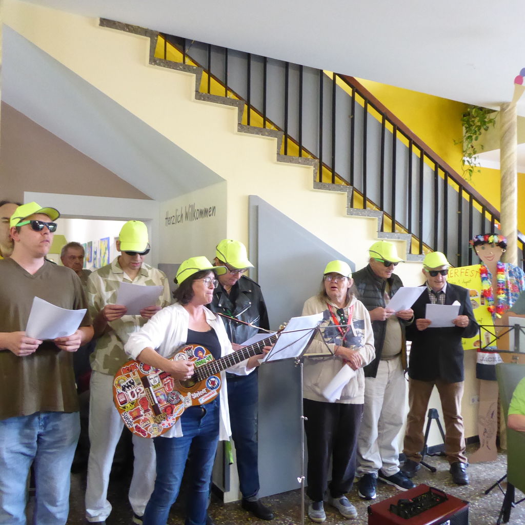 Als dann unsere Spitzenband ihren Auftritt hatte, da war dann auch die Sonne so begeistert, dass sie die Wolken beiseite geschoben hat und am Nachmittag konnte der Spieleparcours im Garten aufgebaut werden.