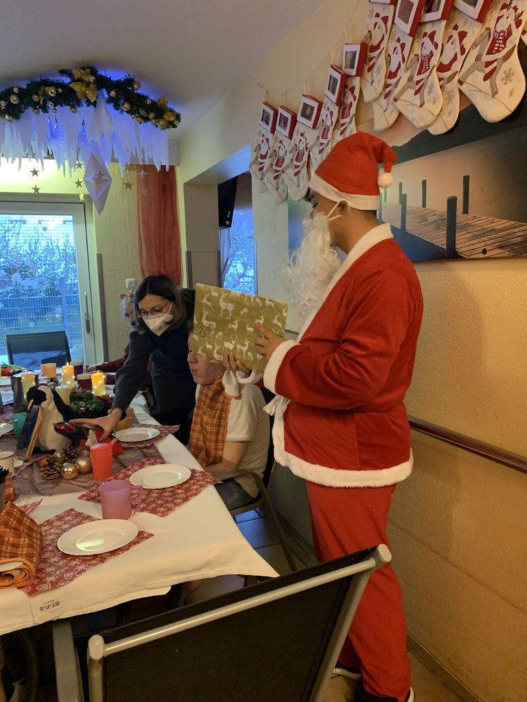 Nach langer Coronapause konnte auch in unseren Gruppen die altbekannte Nikolaus-/Weihnachtsfeier wieder wie gewohnt stattfinden.Mit weihnachtlichen Liedern leuteten unsere Mitarbeiter*innen und Bewohner*innen die Nikolausfeier ein. Bei schön gedecktem Tisch und weihnachtlichen Leckereien wurden die Bewohner außerdem vom Nikolaus besucht, welcher für jeden ein kleines Gedicht und Geschenk mitbrachte. Für alle Teilnehmer*innen war nach vielen Einschränkungen der Pandemie in den letzten Jahren dieser Abend erneut sehr besonders. Besonders der selbstgemachte Bratapfel mit Vanillesoße einer Mitarbeiterin ließ die Augen unserer Bewohner*innen funkeln.