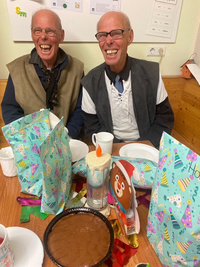 Ihre Freunde überraschten sie mit tollen Geschenken und jeder Menge Süßkram. Bei Kaffee und Kuchen verbrachten Horst und Reinhard ihren Ehrentag.