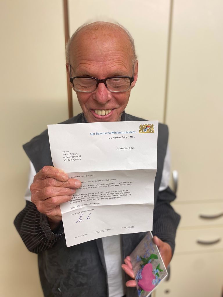 Auch von höchster Stelle gab es Glückwünsche: Dr. Markus Söder schrieb einen Brief und auch Oberbürgermeister Thomas Ebersberger gratulierte per Post.