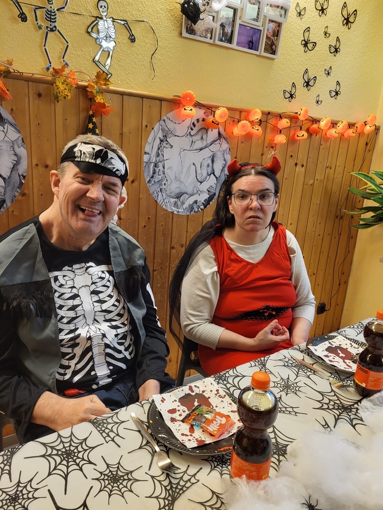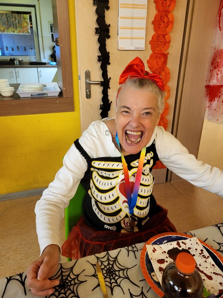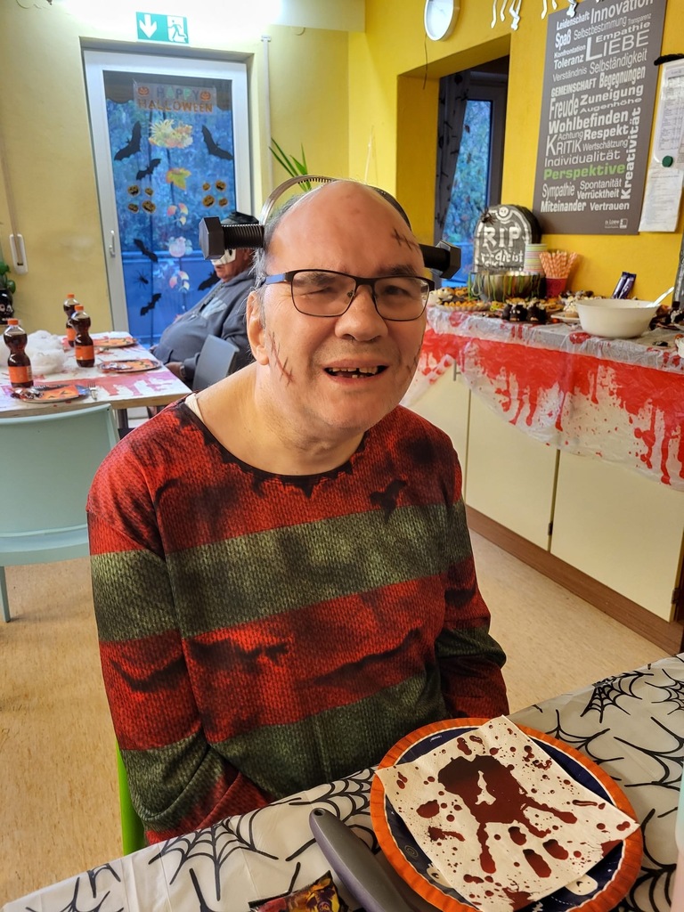 Gruselkostüme und Ekelbuffet in der Fraunhoferstraße 7Auf Halloween freuen sich die Bewohner*innen der Frauhoferstraße 7 immer ganz besonders. Es wird dekoriert und verkleidet und bringt allen eine Menge Spaß!