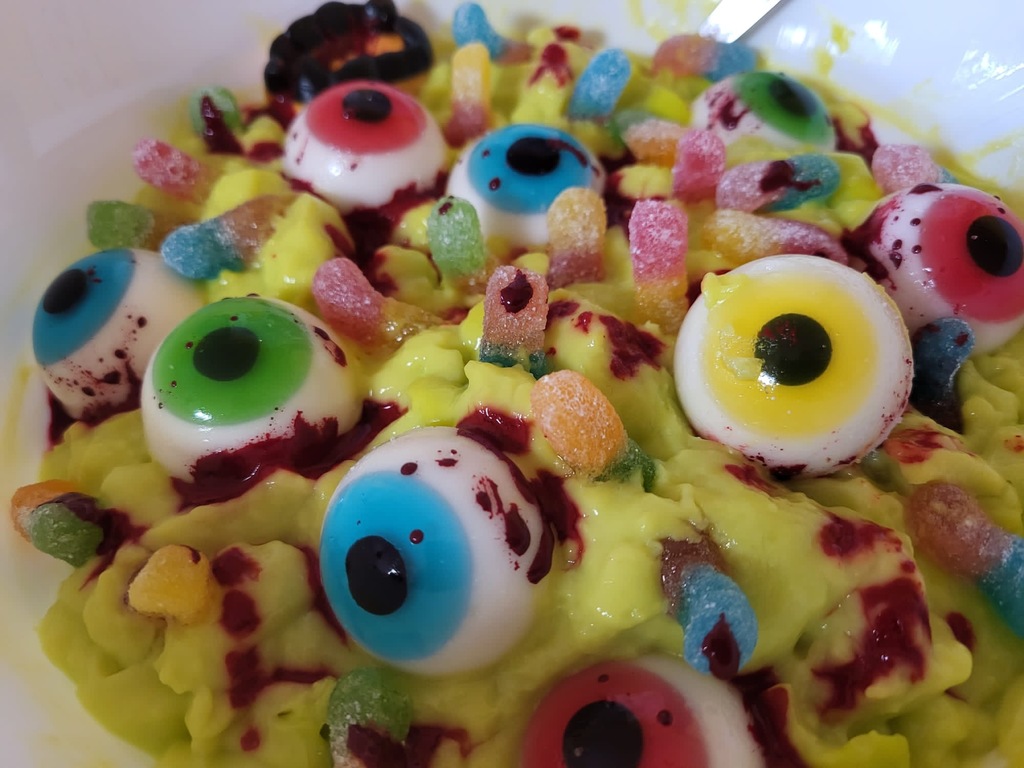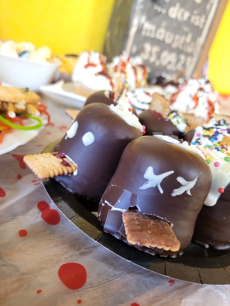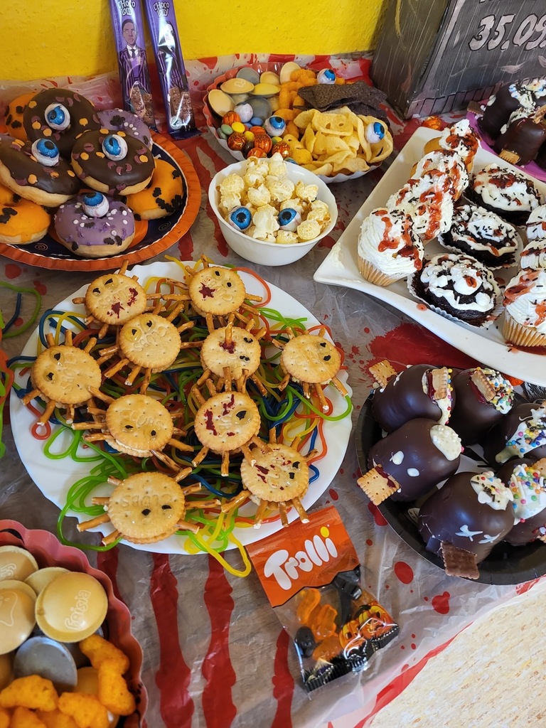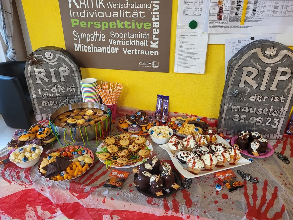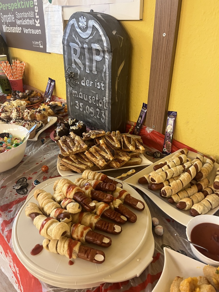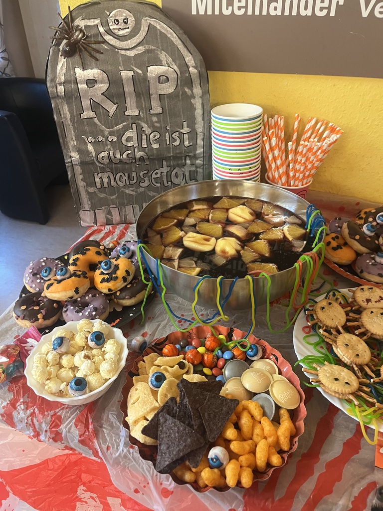 Ein besonderes Highlight ist jedes Jahr wieder das Ekelbuffet mit Glibberpudding, Fingerwürstchen und Keksspinnen.