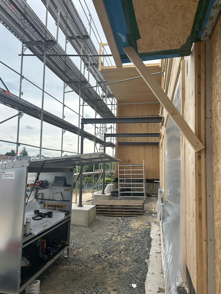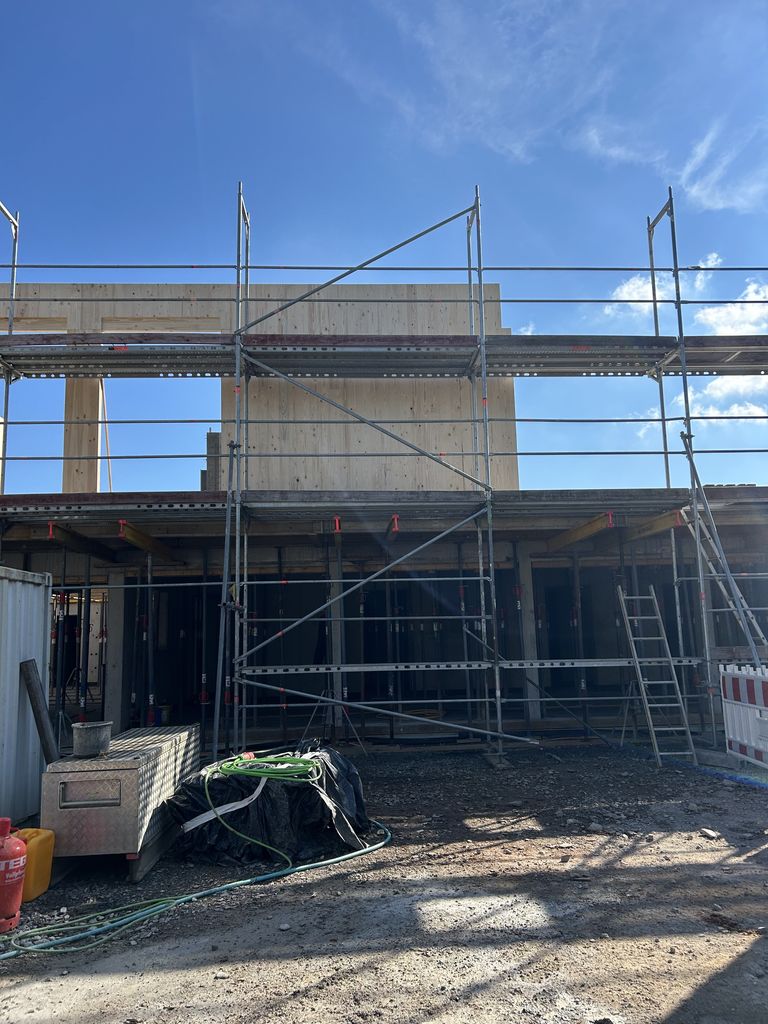 In den kommenden Wochen geht es dann noch an das letzte Stockwerk (2.Geschoss), erste Einbauten der Fenster und finale Betonarbeiten.
