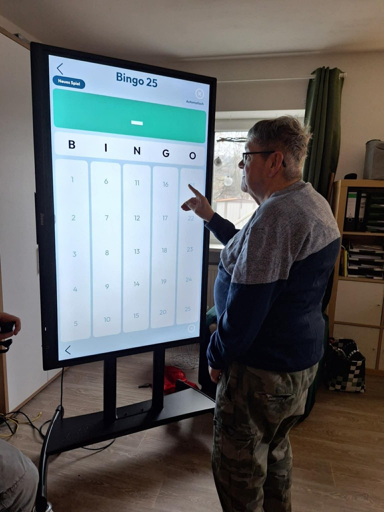 Große Begeisterung beim Bingonachmittag mit Hello MirrorDer Hello Mirror ist ein innovativer, interaktiver „Gesundheits-Spiegel“, der speziell für die Aktivierung und Therapie in Pflegeeinrichtungen und der Geriatrie entwickelt wurde.
