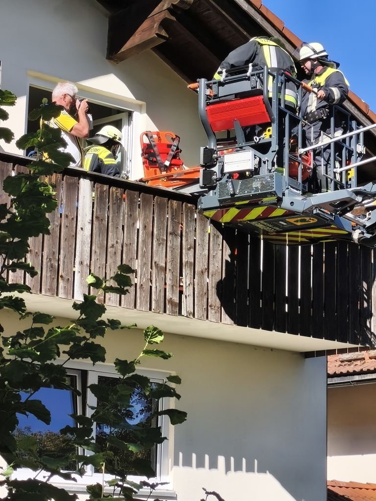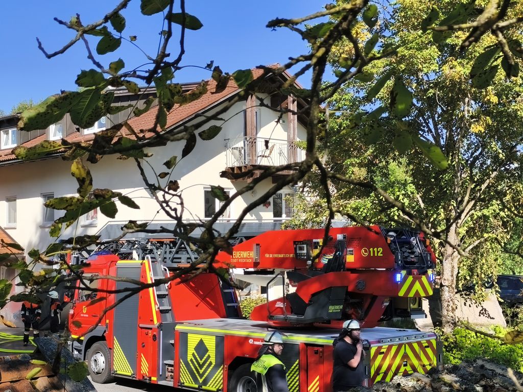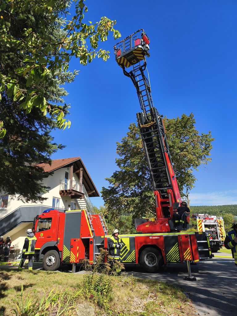 Auch die Drehleiter aus Viechtach kam für die Evakuierung zum Einsatz.