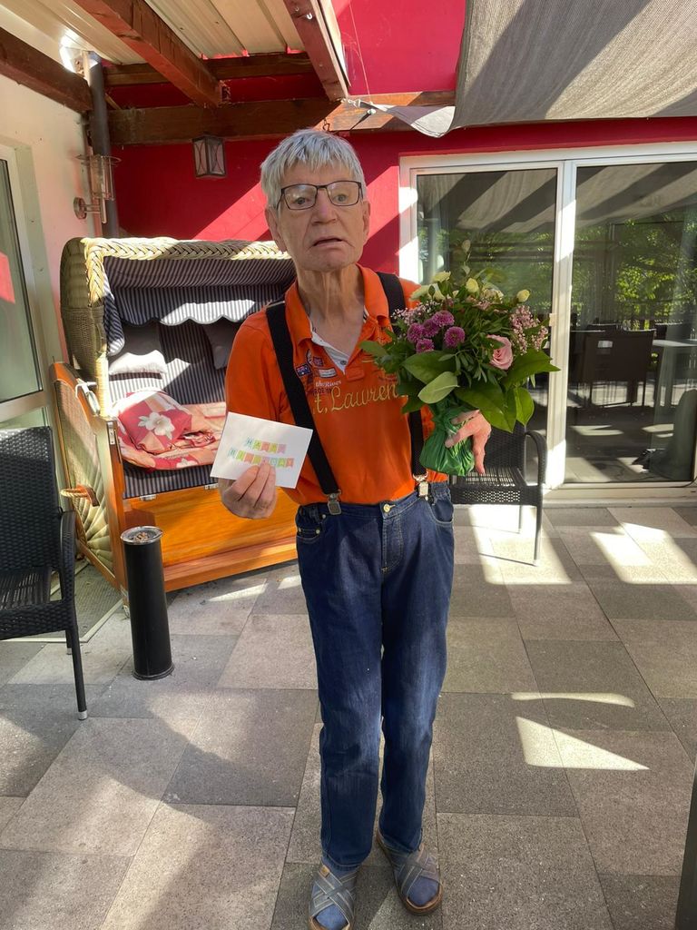 Dieses Jahr wurde Rudi mit einem Blumenstrauß zum Geburtstag überrascht.