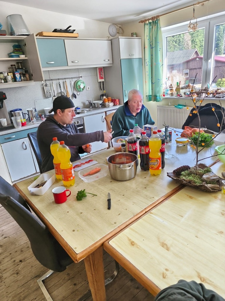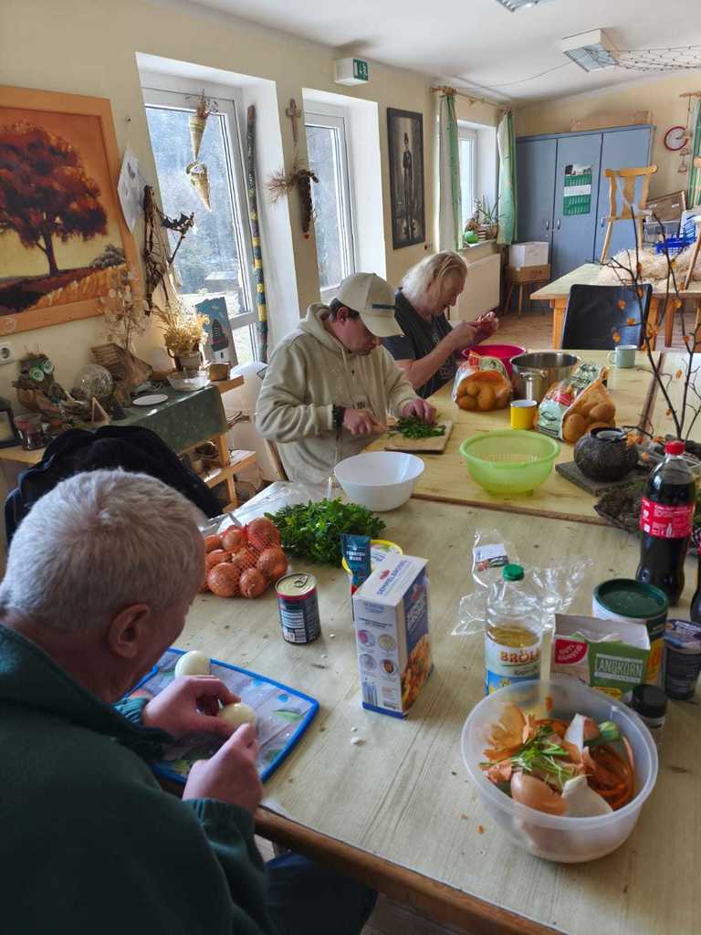 Pünktlich zum Frühlingsbeginn startete auch in diesem Jahr wieder der erste unserer Kochkurse in der Fuchsenschleife.Wir trafen uns mit unserer Mitarbeiterin Anna zum Kochkurs im TSM-Gebäude. Im ersten Schritt wurde gemeinsam beraten, was es zum Essen geben soll. Wir kamen zu dem Entschluß, dass es Tomatensuppe mit Reis und Fleischpflanzerl mit Kartoffelbrei und Gemüse gibt. Bevor wir den Kochkurs starteten, sind wir gemeinsam einkaufen gefahren und jeder musste seine Zutaten besorgen.