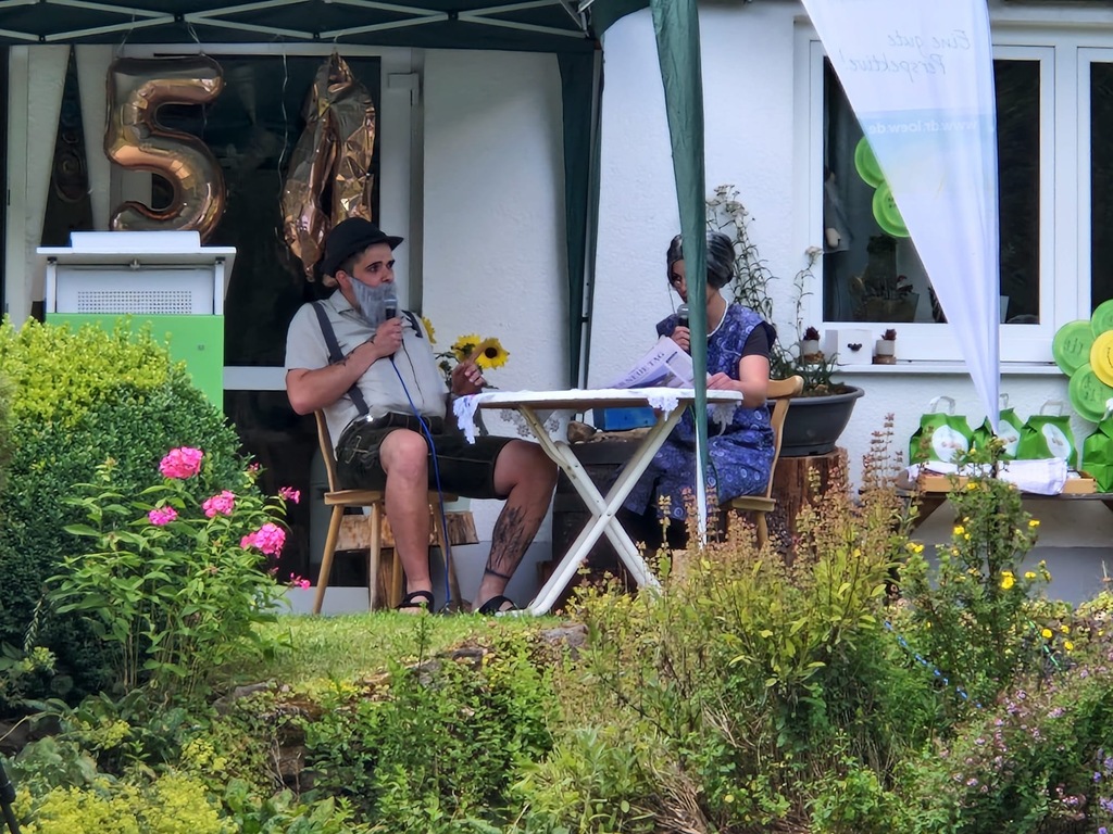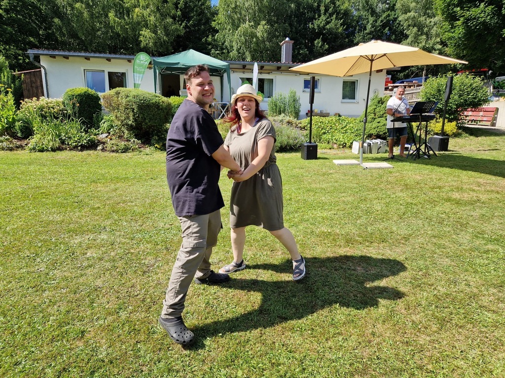 Neben dem offiziellen Teil mit einer kurzen Einlage zur Geschichte unserer Einrichtung, vielen Grußworten und der Ehrungen von langjährigen Bewohnern und Mitarbeitern, gab es eine riesen Auswahl an Kuchen und Torten, kulinarische Highlights wie selbstgemachte Veggieburger und an diesem heißen Tag natürlich ausreichend flüssige Nahrung! :-) In der Fotobox sind wirklich einige lustige und tolle Aufnahmen entstanden und auch unsere Tiere konnten besucht werden. Die letzten Mitarbeiter und einige von uns Bewohnern strichen erst zur späteren Stunde die Segel, nachdem wir den Tag gebührend ausklingen haben lassen.