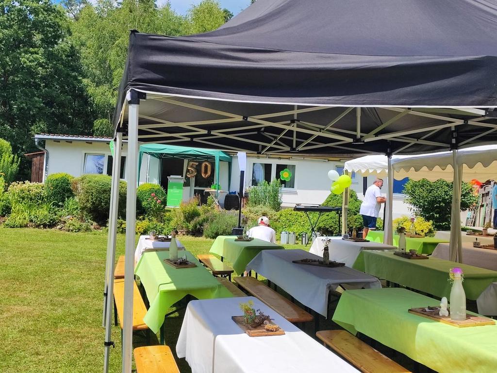Am 19.07.2025 war es endlich soweit, nachdem wir unser Jubiläumsfest im letzten Jahr aufgrund des schlechten Wetters absagen mussten, konnten wir heuer endlich feiern.Bei bestem Wetter mit strahlendem Sonnenschein, fast 300 Gästen und ganz vielen schönen Momenten feierten wir unser 50 - Jähriges Jubiläum. Wir möchten als allererstes bei den vielen vielen Gästen für ihr Erscheinen bedanken und sind unheimlich stolz darauf, dass wir weit über unsere Gemeindegrenzen hinaus, so viel Anklang und Zuspruch finden. Neben unseren etlichen Ehrengästen, wie unserem Direktor Herrn Zitzelsberger und unserer Bereichsleitung Frau Uhlitzsch, unserem Bürgermeister Herrn Dirscherl, dem Mitglied des bayrischen Landtages Herrn Flierl und dem stellvertrenden Landrat Herrn Tischler, waren natürlich auch wieder der SC Weiding und die Freiwillige Feuerwehr Weiding zahlreich vertreten. Aber auch ansonsten kamen ganz viele ehemalige Mitarbeiter, Bewohner und Kollegen aus unseren Nachbareinrichtungen und viele Menschen, die einfach mit uns diesen besonderen Tag genießen wollten.
