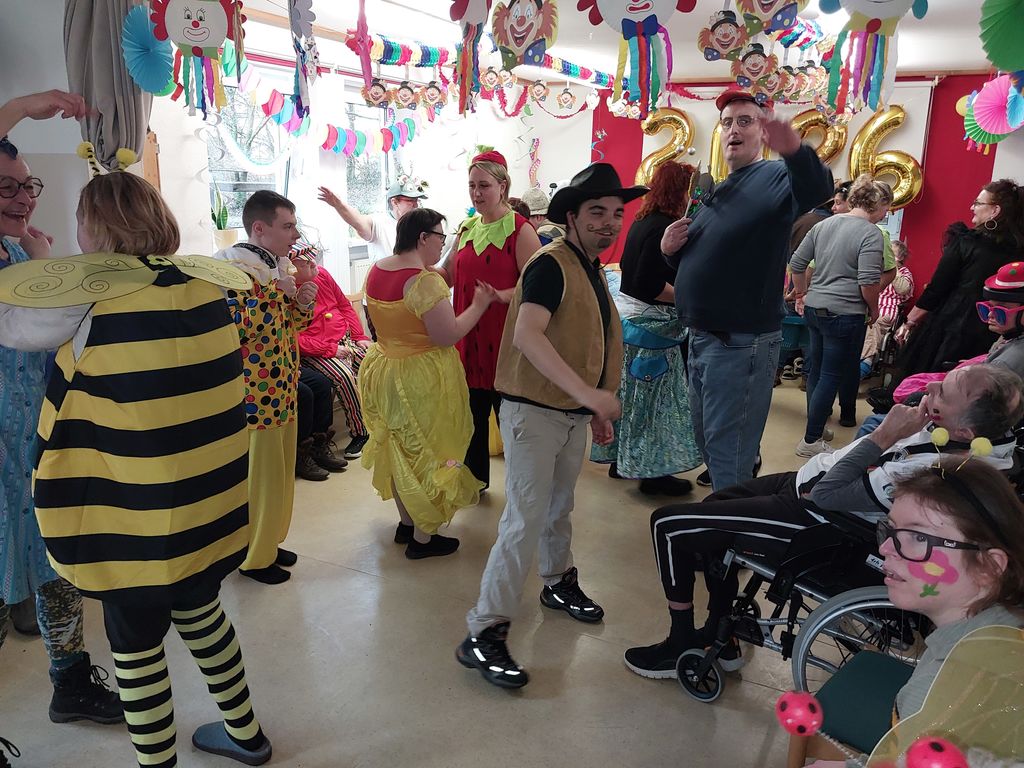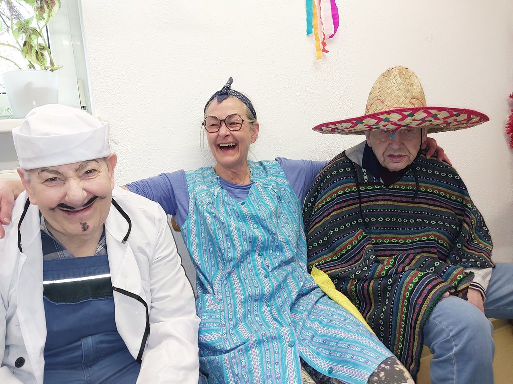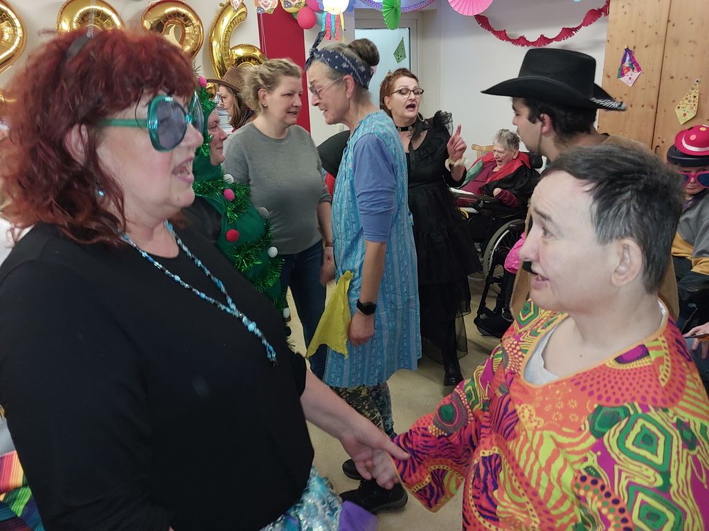 Faschingsfeier unserer BewohnerBunte Kostüme, ein wunderschön geschmückter Mehrzweckraum und Musik zum Abtanzen sorgten für ausgelassene Stimmung beim diesjährigen Bewohnerfasching am Rosenmontag. Da tanzte die Prinzessin mit dem Cowboy und die Polonäse wurde von der verantworlichen Pflegefachfraft angeführt..