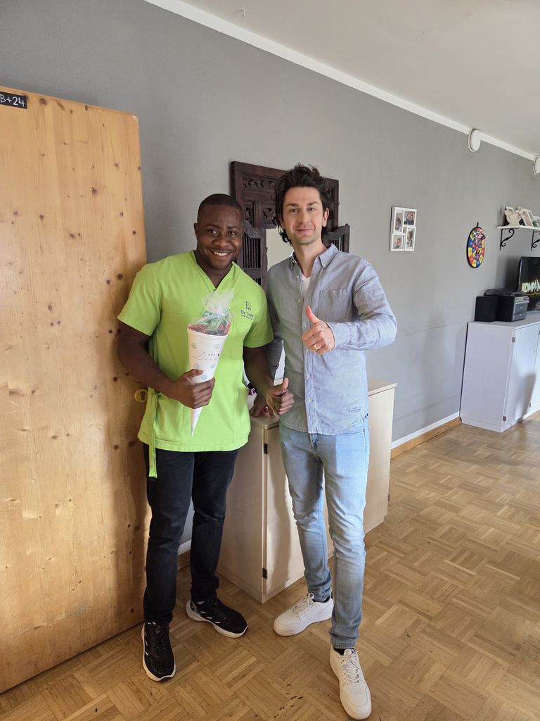 Unser Koffi beginnt seine Ausbildung zur PflegefachpersonSeit September 2023 ist Koffi Nazaire Konan in unserer Einrichtung. Was mit einem freiwilligen Praktikum begann, entwickelte sich mit der Anerkennung seiner Ausbildung zum Pflegefachassistenten. Nun beginnt für Ihn ein weiterer neuer Lebensabschnitt: die Ausbildung zur Pflegefachperson. Dies alles ist vor allem deshalb möglich, weil Koffi einen starken Willen zur ständigen Weiterbildung hat. Seine Deutschkenntnisse sind mittlerweile hervorragend und seinen Führerschein hat er jetzt auch in der Tasche.