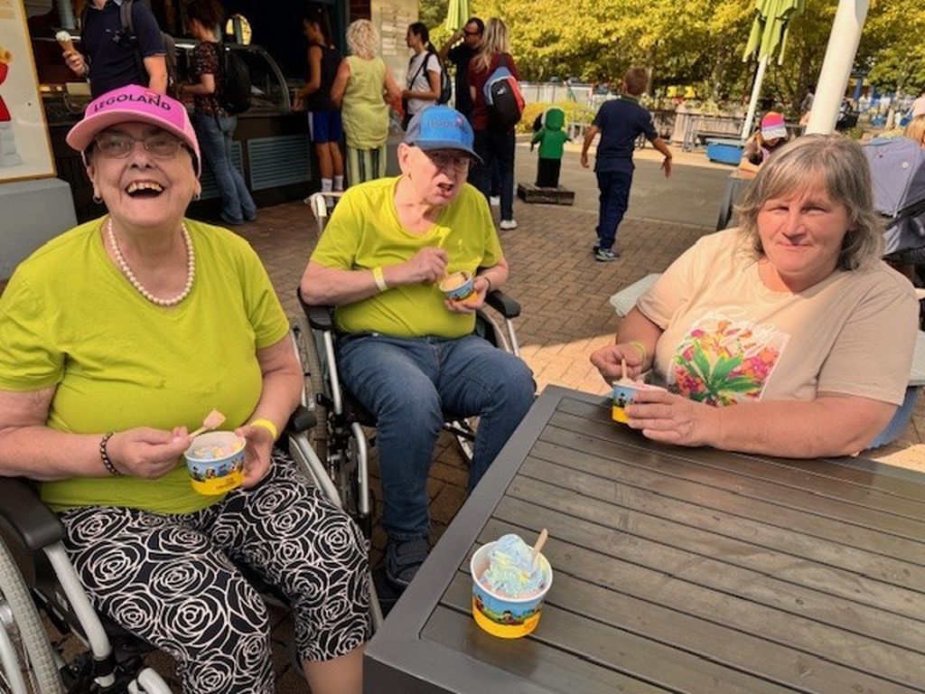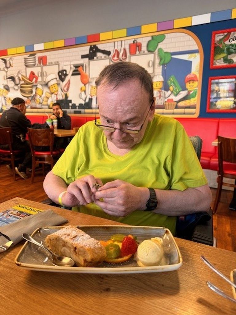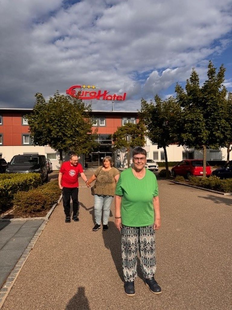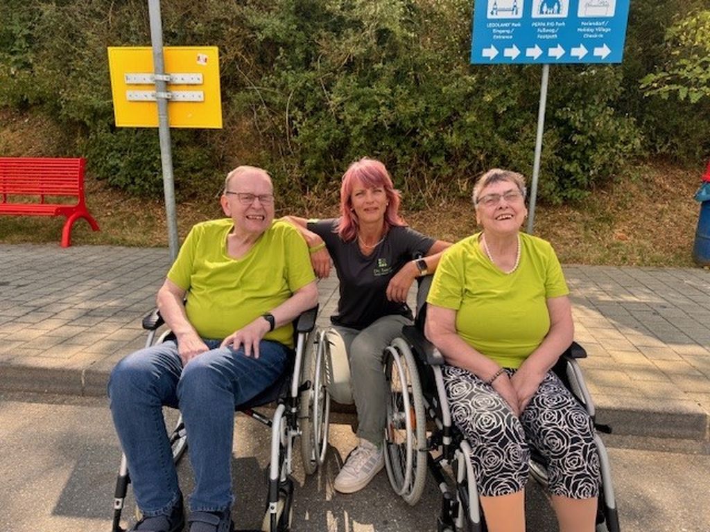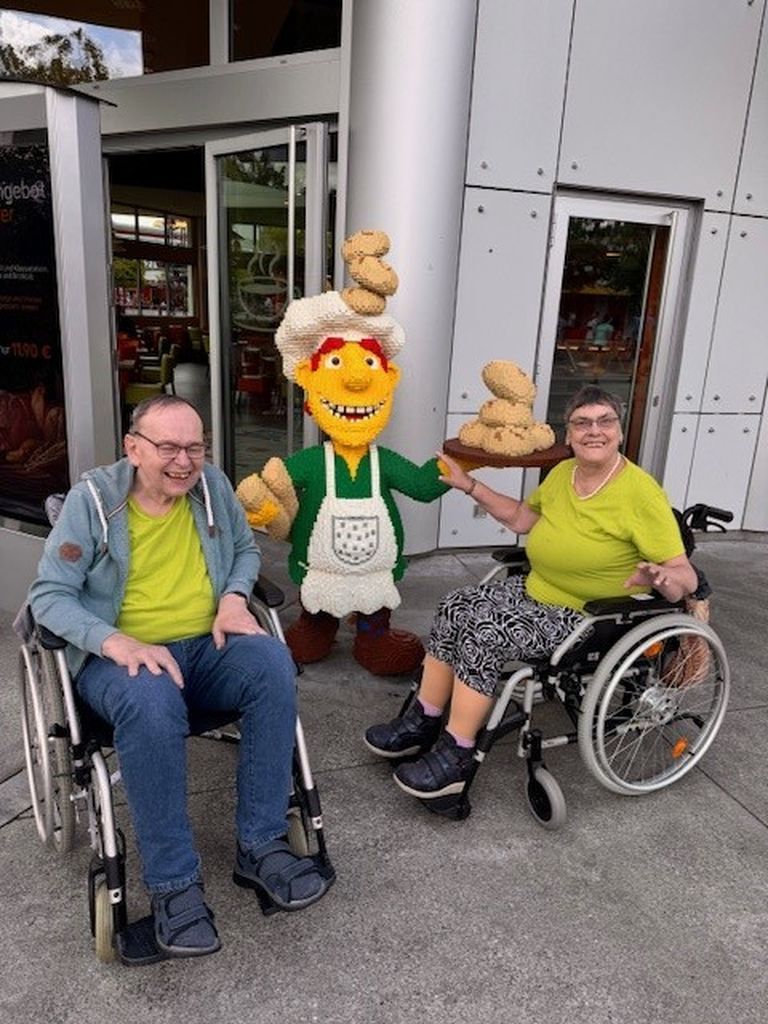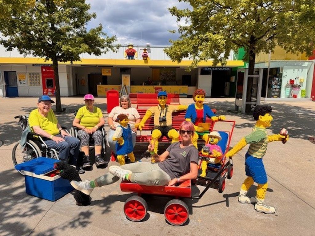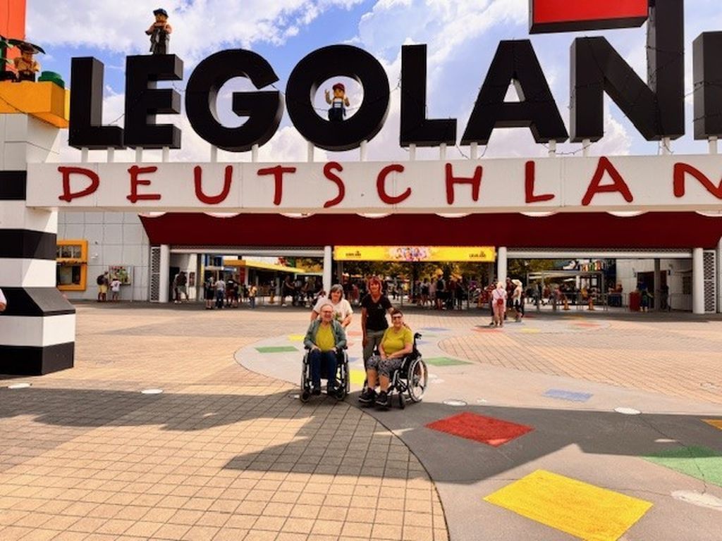 Kurzurlaub mit HindernissenHeiß herbeigesehnt wurde der diesjährige Ausflug der Bewohnervertreter von Linda Böck und Rudolf Roßmann. Wir hatten uns dazu entschlossen, bereits einen Tag vorher, die knapp 300 km lange Strecke zurück zu legen, um dann am nächsten Tag ganz entspannt den Tag im Legoland® zu genießen. Doch zwei Tage davor, ist die zweite Mitarbeiterin ausgefallen und es musste auf die Schnelle Ersatz gefunden werden. Glücklicherweise sprang Evi ganz spontan ein und die Welt war wieder in Ordnung---bis zum Tag der Abreise… Unser Jägerhof- Bus verlor Servolenkungsflüssigkeit und die Werkstatt ließ uns so nicht weiterfahren!!! Was tun? Sollte unsere Reise bereits in Nabburg enden!? Aber auch diesmal hatten wir Glück und das Autohaus fand ganz flott ein Leihfahrzeug für uns, in das Rollstühle und Gepäck bequem reinpassten! Nun aber los- wir hatten schon genug Zeit verloren. Inzwischen war es schon wieder Zeit fürs Mittagessen, so dass wir uns auf den Schreck erstmal im Rasthof Pentling gestärkt haben. Wir kamen am frühen Nachmittag in Günzburg an und checkten in unserem Hotel ein. Nach einem kurzen Nickerchen fanden wir ein lauschiges Plätzchen im Biergarten in direkter Hotelnähe, der fußläufig zu erreichen war. Nach so viel aufregenden Eindrücken gingen alle früh ins Bett. Am nächsten Morgen genossen Evi und Rudi, unsere Frühaufsteher, bereits das Frühstück am reichhaltigen Buffett, als Linda und Peggy später dazu kamen. Voller Vorfreude, gings anschließend zum vereinbarten Treffpunkt, an dem der Reisebus mit den anderen Bewohnervertretern eintreffen sollte. Mit großem Hallo wurde insbesondere Sandra Loew begrüßt. Das Legoland war sehr beeindruckend und wir hätten noch mindestens einen weiteren Tag dort verbringen können mit Shoppen, Eis essen, Fahrt mit dem Legoland®-Express, Schiffsschaukel oder auf dem Aussichtsturm. Müde und glücklich traten wir die Heimreise an, die ohne weitere Pleiten, Pech und Pannen vonstattenging.