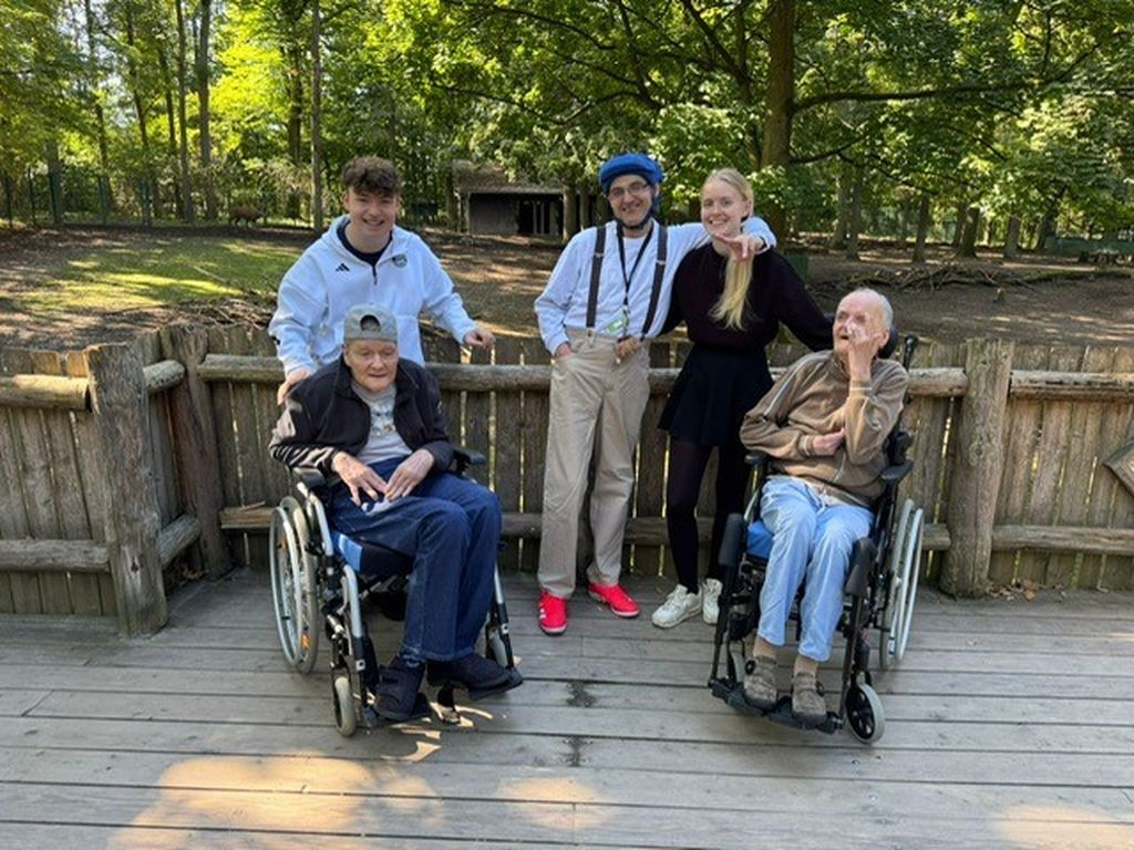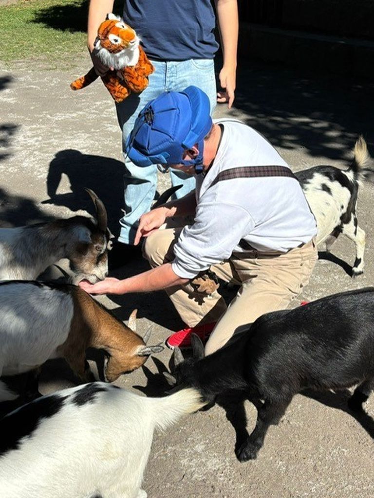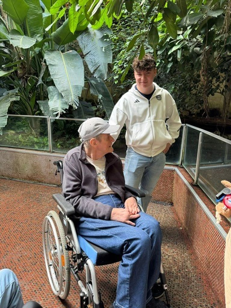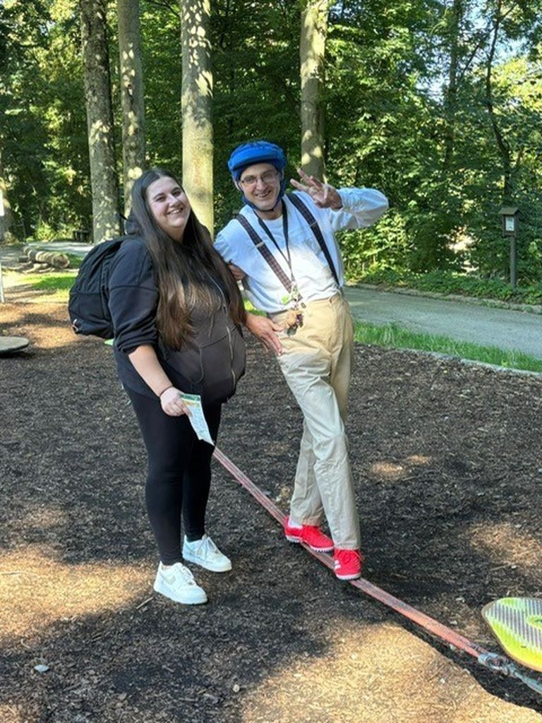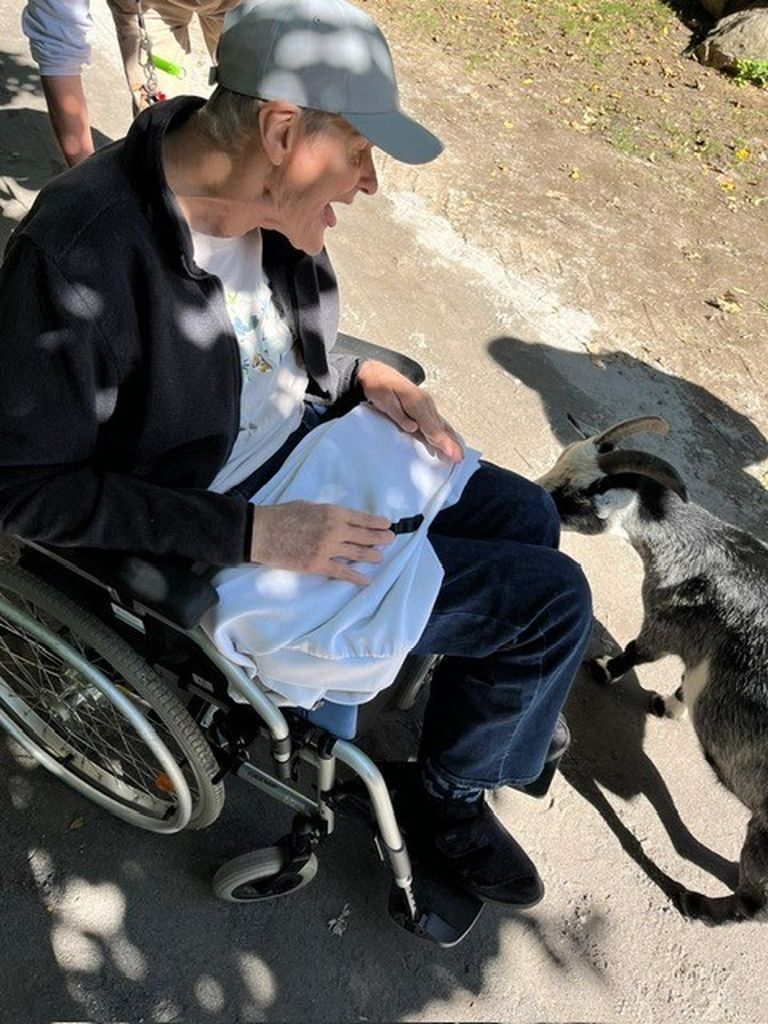 Ausflug in den Tiergarten StraubingJeweils drei Bewohner und Mitarbeiter der Gruppe 4 machten sich an einem sonnigen Donnerstagmorgen auf den Weg in den Tiergarten Straubing.Bereits Wochen vorher herrschte große Vorfreude. Das Wetter meinte es den ganzen Tag gut mit uns.Angekommen, spazierten wir durch den Park und alle waren fasziniert von den vielen exotischen Tieren. An den Gehegen konnten diese hautnah beobachtet werden.Die Mutigen unter uns fütterten im Streichelzoo sogar die (sehr aufdringlichen) Ziegen.Nach dem Mittagessen ging es noch in den Souvenirshop, wo sich jeder Bewohner ein Kuscheltier als Andenken aussuchte.Bevor wir die Rückfahrt antraten, wollte der ein oder andere noch Schaukeln oder auf der Slackline sein Talent beweisen.Heimwärts hielten wir noch in Cham an. Wir versorgten uns im Kaufland mit Leckereien für einen schönen Fernsehabend daheim.Zum Schluss kehrten wir noch in einem chinesischen Restaurant ein, wo wir den Tag Revue passieren lassen konnten.