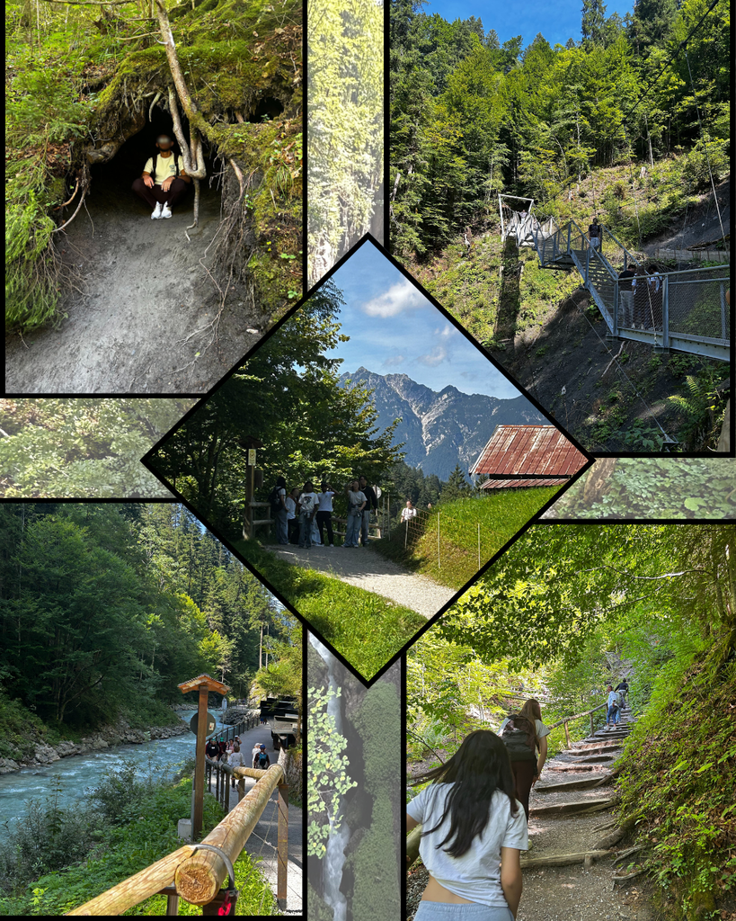 Am nächsten Tag sind wir durch die Partnachklamm gewandert und es war sehr schön, den langen klaren Fluss zu sehen und natürlich die weiteren tollen Sehenswürdigkeiten auf unserem Weg. Danach machten wir eine Pause am Fluss. Wir gingen durch das eiskalte Wasser und mussten sehr viel lachen, weil es für manche nicht zum Aushalten war.