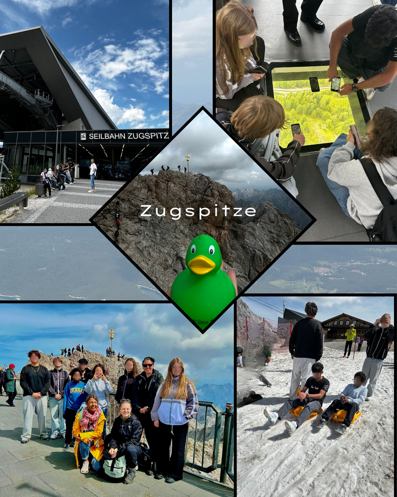 Am letzten Tag fuhren wir mit der Zahnradbahn zur Zugspitze hinauf. Es war übelst hoch, aber die Aussicht der Wahnsinn. Unser Highlight auf der Zugspitze – Schlittenfahren im Sommer! Macht man auch nicht alle Tage.