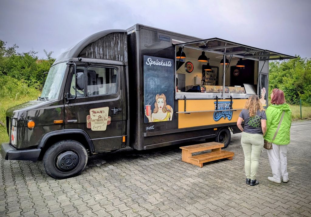 Ein besonderes Highlight des Festes war das liebevoll gestaltete Kuchenbuffet, das keine Wünsche offenließ. Es war für jeden Geschmack etwas dabei. Auch für herzhafte Genießer war gesorgt: Ein Foodtruck (Auerbacher Steetfood) versorgte die Gäste mit frisch gegrillten Burgern leckeren Pilzragout, die auf große Begeisterung stießen.
