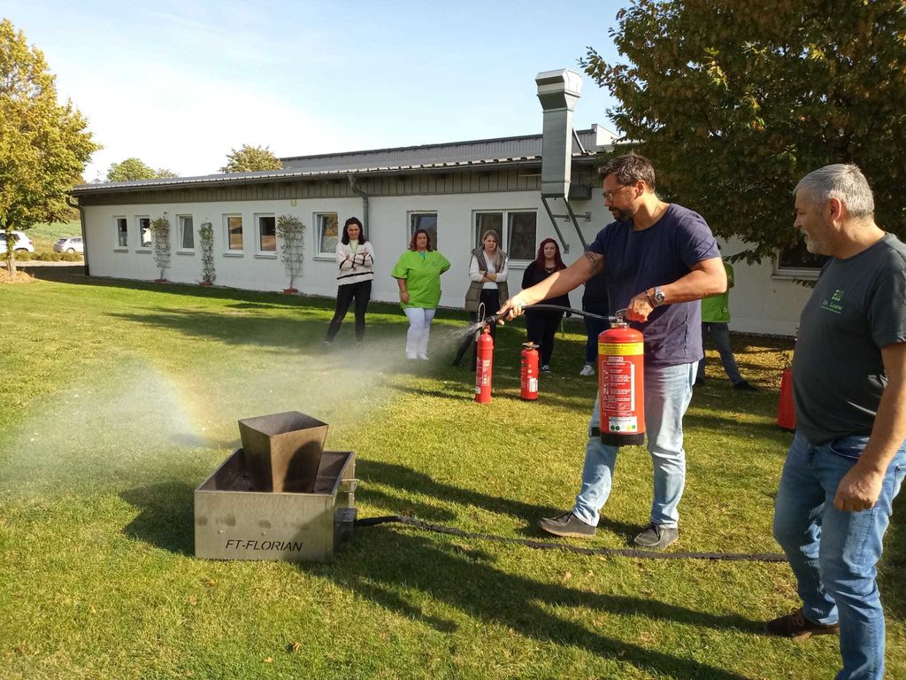 Mitarbeiter/innen übten den Umgang mit dem FeuerlöscherEin Brand in sozialen Einrichtungen hat nicht selten schwerwiegende Konsequenzen.