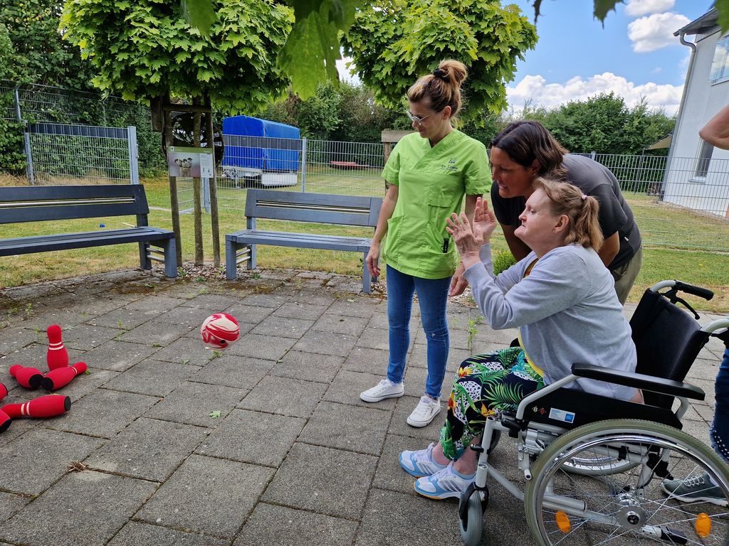Ein besonderes Highlight war das gemeinsame Spiel- und Bewegungsprogramm am Nachmittag. Bewohner und Mitarbeiter traten bei kleinen Wettbewerben wie Wurfspiele, Badminton, Crocket usw. in Teams gegeneinander an. Die Freude und das Lachen waren überall zu spüren. Besonders schön war zu sehen, wie miteinander gespielt und gefeiert wurde.