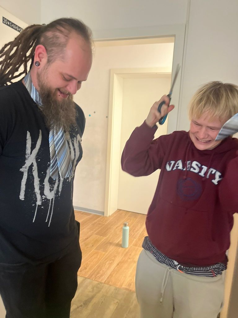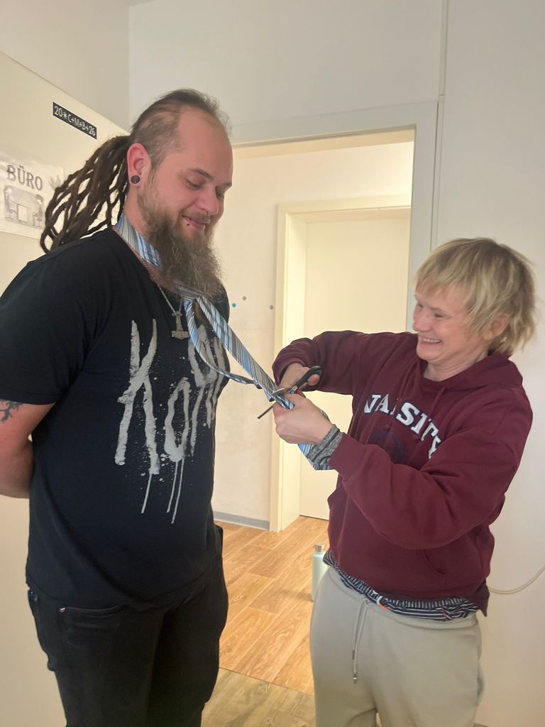 Schnipp schnapp Krawatte ab!Im Federhof war heut was los, die Scheren schnitten - ratzfatz, famos!