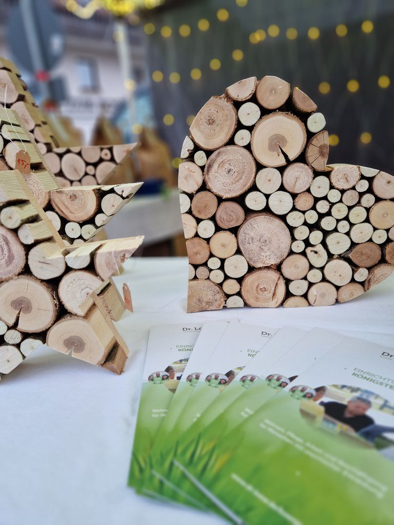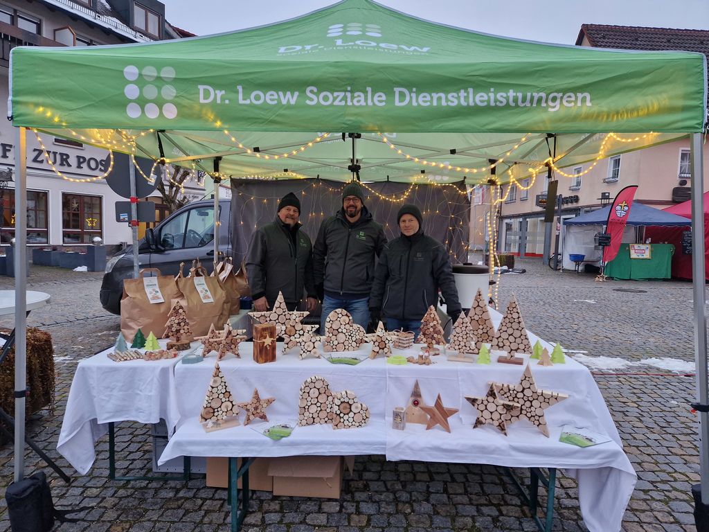 Unser Stand auf dem Königsteiner WeihnachtsmarktAm diesjährigen Weihnachtsmarkt in Königstein nahm unsere Einrichtung mit einem eigenen Verkaufsstand teil. Im Mittelpunkt standen handgefertigte Holzdekorationen, die von unseren Bewohnerinnen und Bewohnern mit Hilfe den Mitarbeitern mit viel Engagement und Kreativität selbst hergestellt wurden. Die liebevoll gestalteten Produkte fanden großen Anklang bei den Besucherinnen und Besuchern und stießen auf reges Interesse.