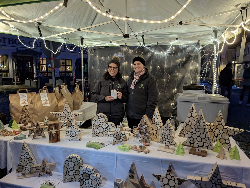 Neben der Holzdekoration boten wir auch „Zündis“ sowie heiße Schokolade an. Besonders die warme Schokolade erwies sich bei den winterlichen Temperaturen als beliebte Spezialität und trug zu einer einladenden Atmosphäre an unserem Stand bei.