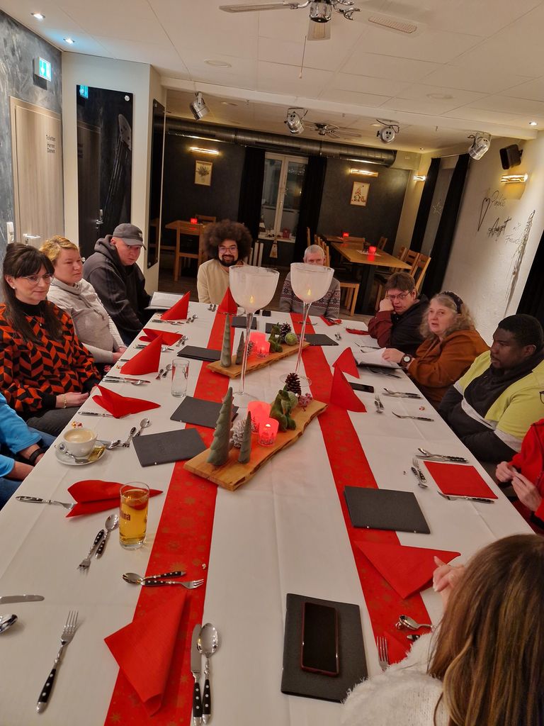 Am 26.11.25 fand eine stimmungsvolle Adventsfeier unserer Ambulanz statt, die von den Mitarbeitenden gemeinsam vorbereitet wurde. In gemütlicher Atmosphäre in Restaurant B14 bot sich allen Anwesenden die Gelegenheit, fern des Arbeitsalltags ins Gespräch zu kommen und den vorweihnachtlichen Geist zu genießen.