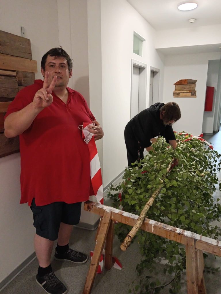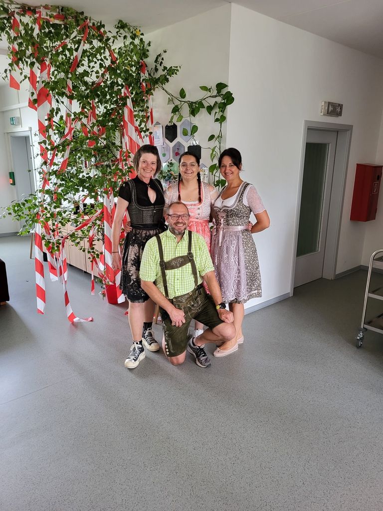 Tradition trifft Spaß - Zwei Tage voller bayerischer Freude!In diesem Jahr feierten wir gleich zwei lebhafte Feste! Zuerst fand die Kirchweih auf unserer Gruppe 2 statt, bei der unsere Bewohner gemeinsam mit Kolleginnen loszogen, um einen prächtigen Baum zu besorgen. Dieser wurde liebevoll geschmückt und festlich im Gruppenraum aufgestellt. Am Abend feierten wir dann gemeinsam, lachten und unterhielten uns prächtig. Kulinarisch wurde das Fest mit Karamalz und einer deftigen Schlachtschüssel abgerundet.