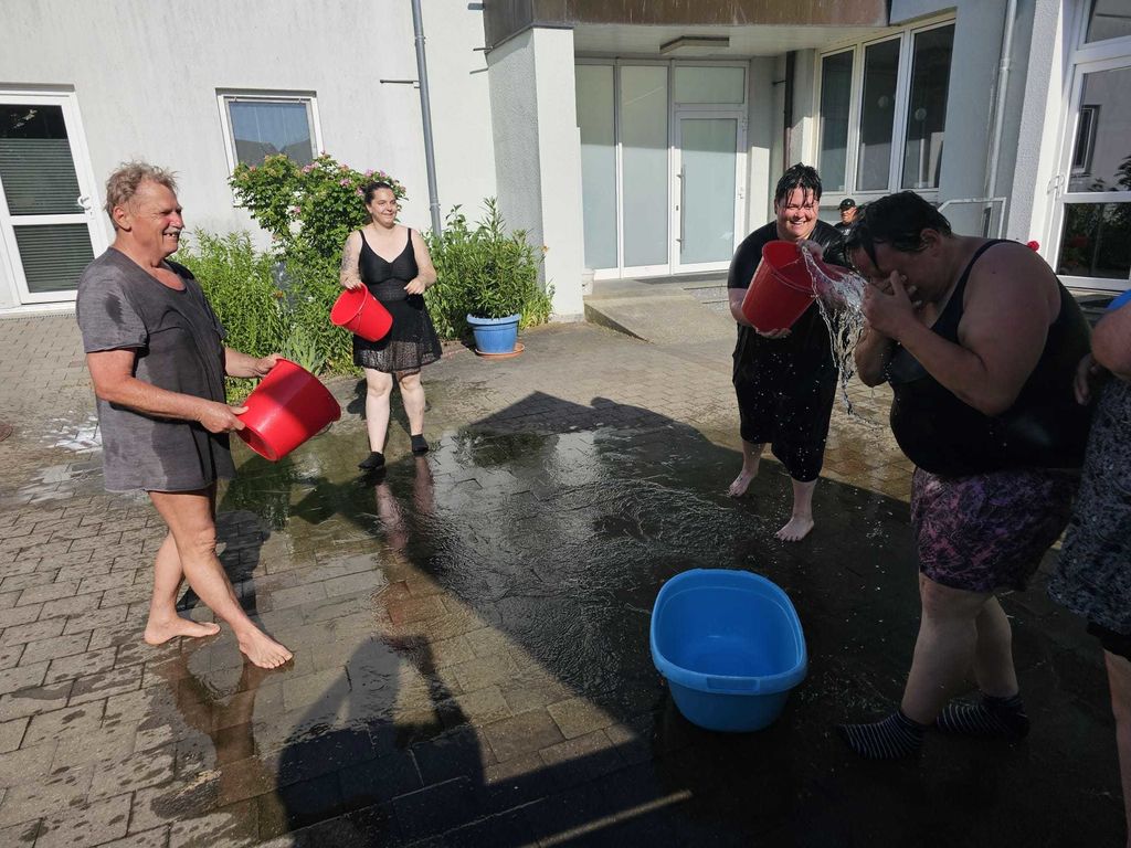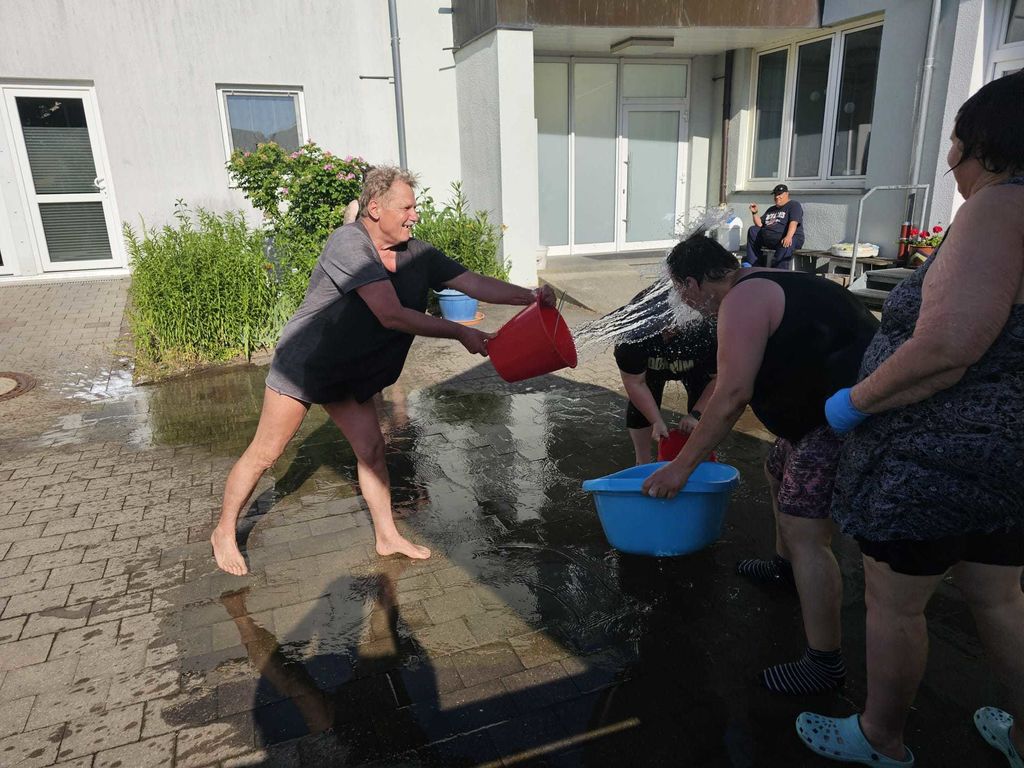 In Lichtenau geht’s feucht, fröhlich zu!In diesem Sommer hatten wir gleich zwei actionreiche „Wasserschlachten“! Bei strahlendem Sonnenschein und heißen Temperaturen verwandelten unsere Bewohner und Mitarbeiter den Garten in eine spritzige Arena. Mit Wasserbomben und Eimern wurde ordentlich geworfen und gespritzt. Die Freude war riesig, als sich alle gegenseitig nass machten und herzhaft lachten – eine perfekte Abkühlung für die heißen Tage! Ein großes Dankeschön an alle, die an beiden Tagen mitgemacht haben. Wir freuen uns schon auf neue Abenteuer in der nächsten Saison!