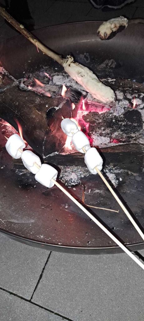Der Höhepunkt des Abends war unser gemütliches Lagerfeuer im Garten. In der warmen, herbstlichen Atmosphäre versammelten sich alle rund um die Feuerstelle. Gemeinsam wurde gelacht, erzählt und natürlich Stockbrot gebacken – für viele einer der schönsten Momente des Tages.