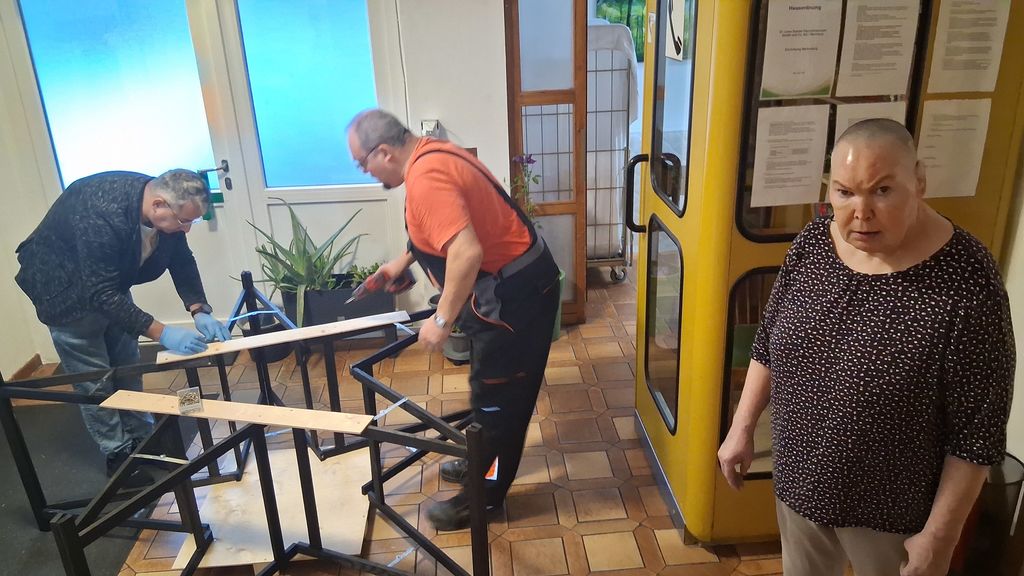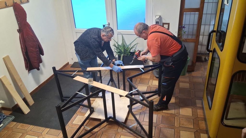 Unter der strengen Aufsicht unserer Bau- und Dekorationschefin Lotte werkelten Stani und Wolfgang an dieser grandiosen Gartenattraktion.