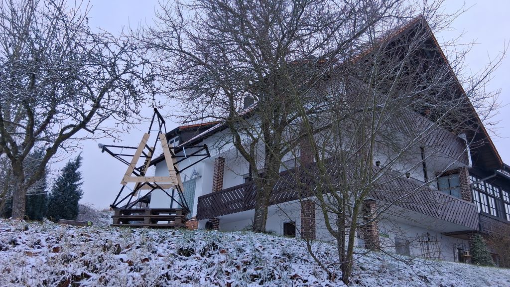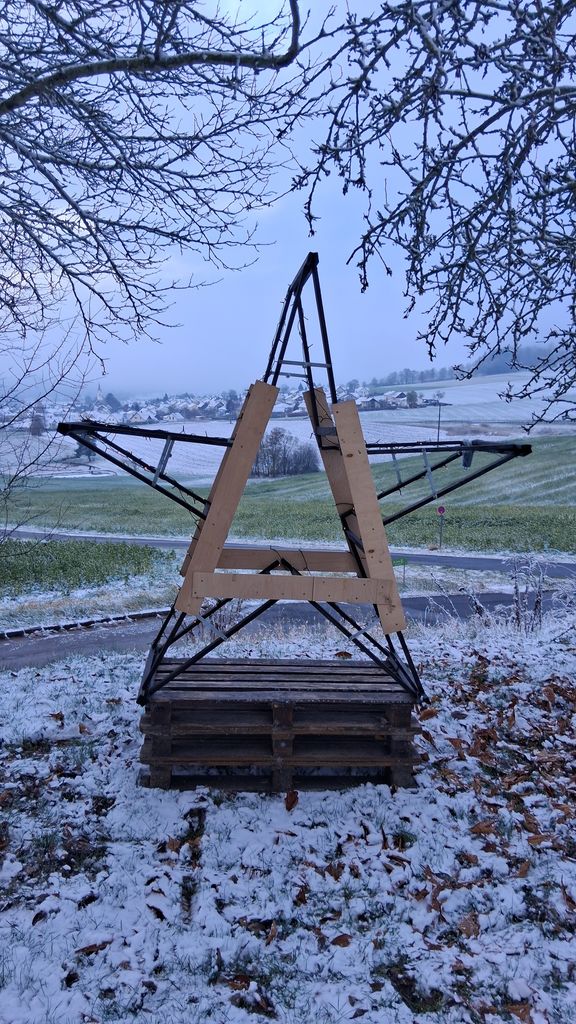 Aus einer Idee entstand ein riesiger und beleuchteter Weihnachtsstern.Weihnachten steht schon fast vor der Tür. Rundum erstrahlen Häuser und Gärten in festlichem Lichterglanz. Die Mertenberger Belegschaft hatte einen brillanten Geistesblitz und konstruierte einen gigantischen Weihnachtsstern, der im wahrsten Sinne des Wortes den Weg nach Mertenberg weist.