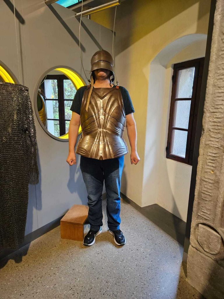 Eine Gruppe durfte ihr Können im Bogenschießen zeigen, während die andere erfuhr, wie es ist, mit Tinte und Feder zu schreiben, ganz wie früher. Es war sehr interessant, und uns wurden viele Fragen beantwortet. Außerdem durfte, wer wollte, in eine echte Ritterrüstung schlüpfen, was natürlich für viel Begeisterung sorgte.