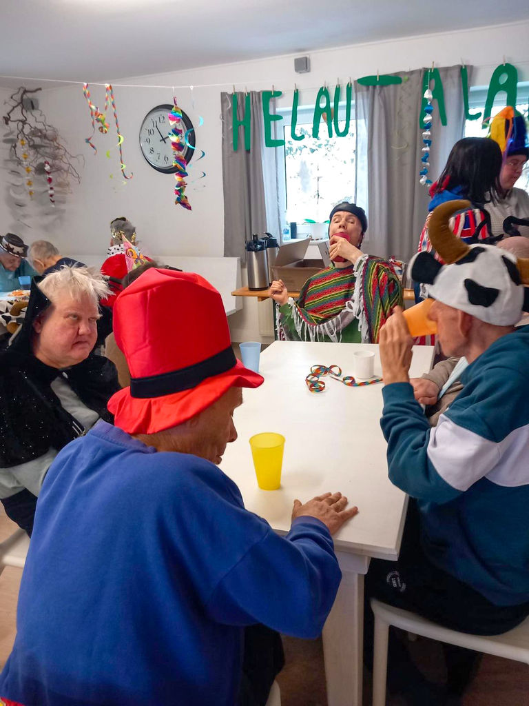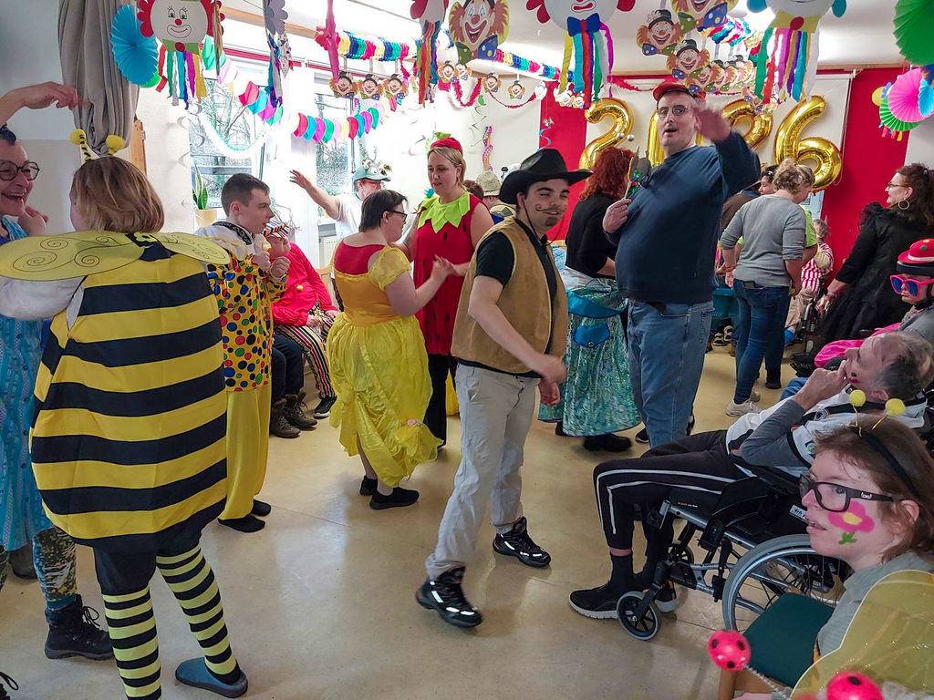 Ob in großen Gemeinschaftsräumen mit Luftschlangen und bunten Girlanden oder im kleinen Rahmen auf dem Sofa – überall ist diese besondere Leichtigkeit spürbar. Minnie Maus dreht fröhlich ihre Runden, Clowns und Pirat:innen feiern mit, Prinzessinnen tanzen, während Bienen durchs bunte Treiben schwirren. Und auch wer es etwas ruhiger angeht, genießt die besondere Atmosphäre. Und ja ....es wurde getanzt....viel getanzt :-)