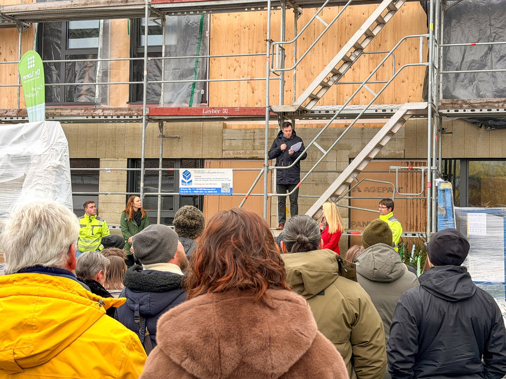 Bei zwei Führungen erhielten die Gäste einen ersten Eindruck vom Erd-und Obergeschoss. Gezeigt wurden bereits erkennbare Klientenzimmer, die entstehende Großküche sowie die großzügig geplanten Verwaltungsräume.