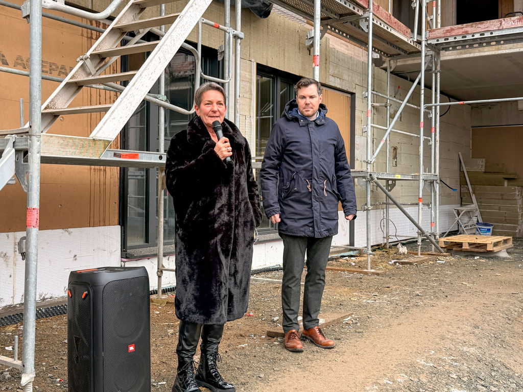 Peter Pirzer, Geschäftsführer des Bauträgers Immocontec GmbH, begrüßte zunächst alle geladenen Gäste und informierte über den aktuellen Baufortschritt. Danach zeigte sich Geschäftsührung Sandra Loew in ihren Grußworten sichtbar beeindruckt von der Größe und der Dimension des entstehenden Gebäudes. Im Anschluss wurde der Richtbaum aufgestellt, bevor ein Zimmerer den traditionellen Richtspruch sprach und alle am Bau Beteiligten hochleben ließ.