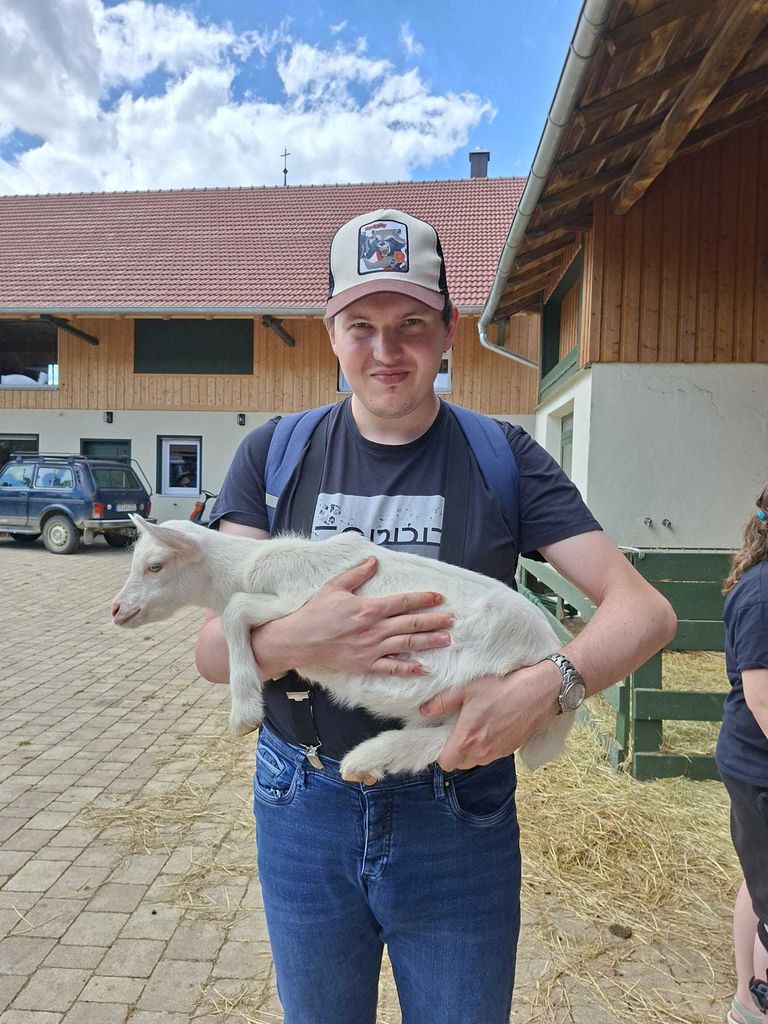 An einem sonnigen Tag machten wir uns voller Erwartung auf den Weg nach Aholfing und die Bewohner freuten sich schon so darauf, die Alpakas zu sehen und sie zu streicheln.In Aholfing angekommen wurden wir schon von Dagmar erwartet. Und wir hörten auch schon komische Geräusche. Beim Näherkommen sahen wir sie: die vielen Ziegen. Diese begrüßten uns mit lautem „Geschrei“. Bozena war sofort Feuer und Flamme und nicht mehr zu halten. Sie sah die kleinen Babyziegen und war weg. Die Bewohner durften die Ziegen streicheln und 2 Babyziegen durften die Bewohner sogar in den Armen halten.