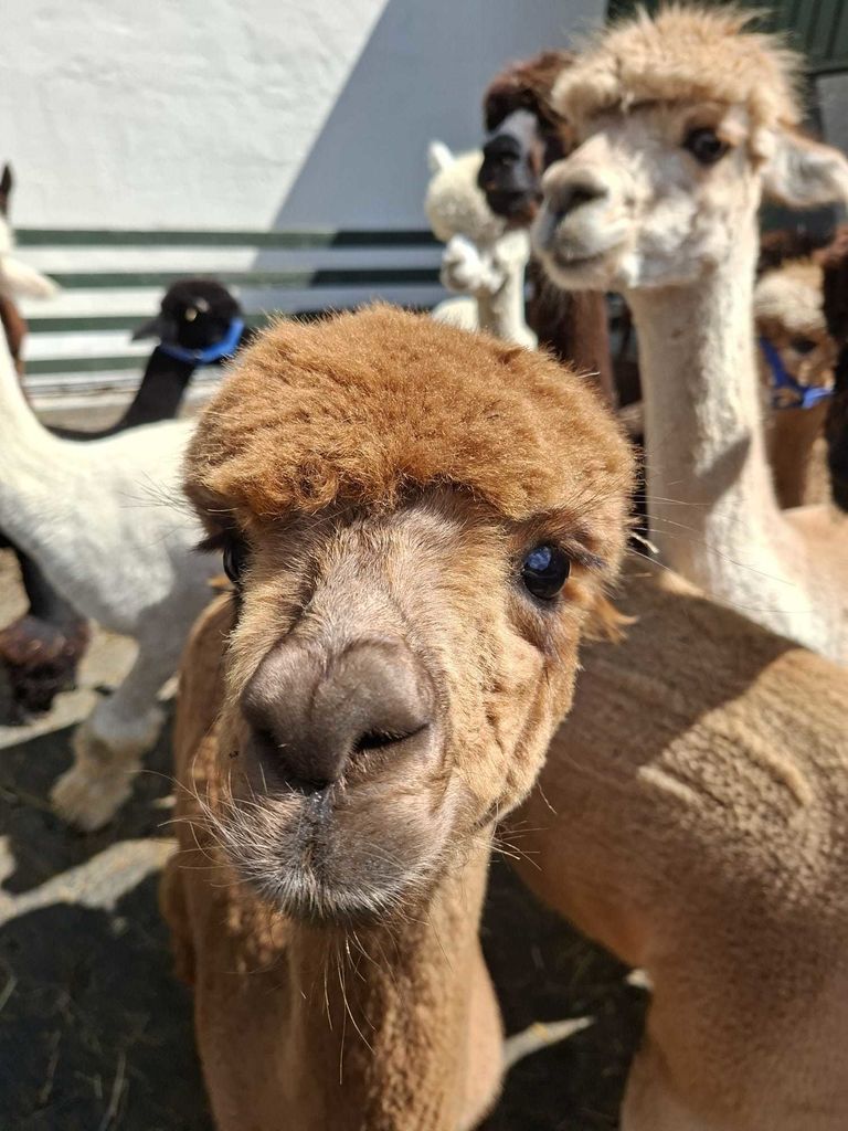 Nachdem wir uns lange mit den Ziegen beschäftigt hatten, durften wir uns die Pferde anschauen. Diese ließen sich auch geduldig streicheln und anfassen. Im Hintergrund hörte man immer etwas brummen. Dagmar erklärte uns dann, dass sich so die Alpakas verständigen. Und so folgten wir ihr zu einem weiteren Gehege, wo sich die Alpakas aufhielten.