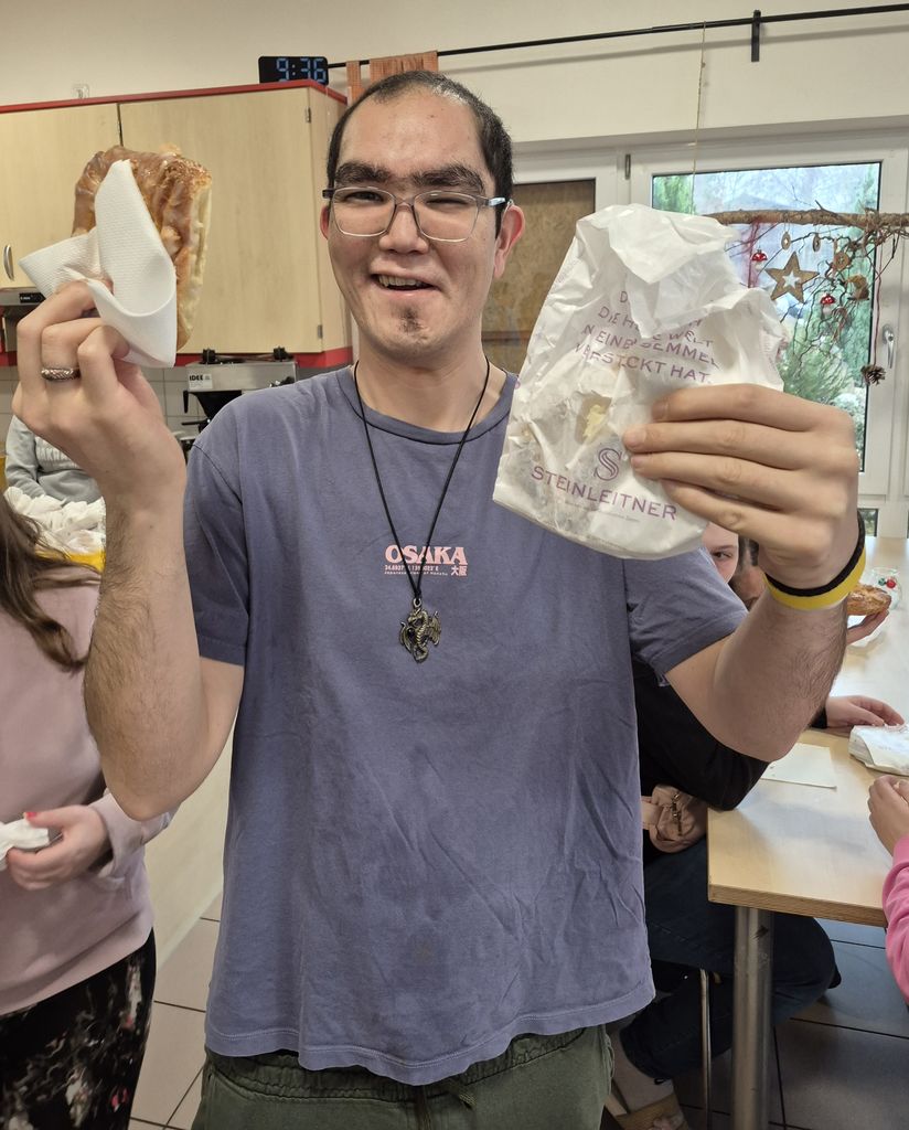 Am 18.12. besuchten die beiden unsere Einrichtung und verteilten kostenlose Butterbrezen und Plunder an alle Bewohner. Die Mitarbeitenden erhielten auch noch leckere Lebkuchen mit dem passenden Namen „Seelenhutscher“. Da Hr. Rankl die Bewohner*innen erst kurz vor dem Besuch informierte, war die Überraschung umso größer!