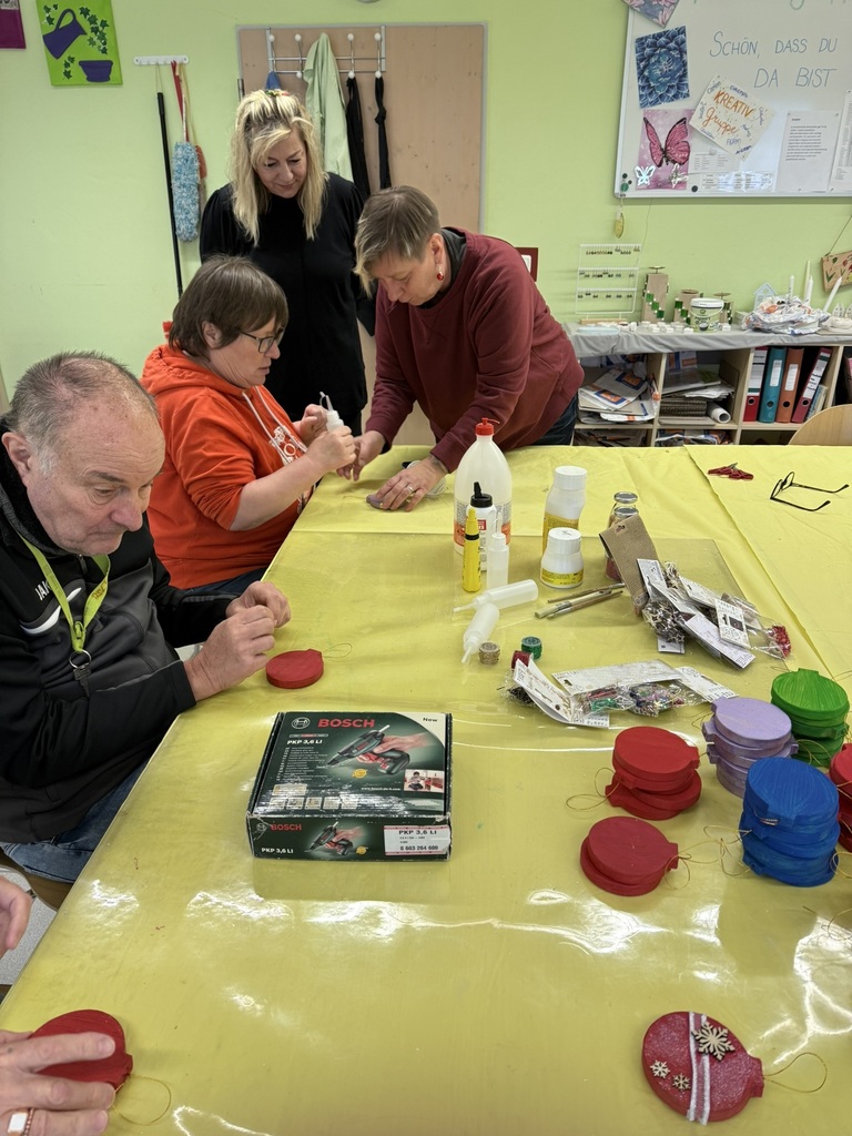 Der Raum war erfüllt von dem Duft von Zimt und Weihnachtsgebäck, und die Stimmung war von Anfang an super. Unsere Gäste wurden mit einem leckeren Punsch begrüßt und konnten sich gleich in die Bastelarbeiten stürzen. Es wurden gemeinsam Christbaumkugeln gebastelt, die einfach nur bezaubernd aussahen. Nach einer Weile versammelten wir uns wieder im Bistro um eine wunderschöne Weihnachtsgeschichte zu hören. Alle Anwesenden waren mit großer Aufmerksamkeit dabei und lauschten gespannt zu.