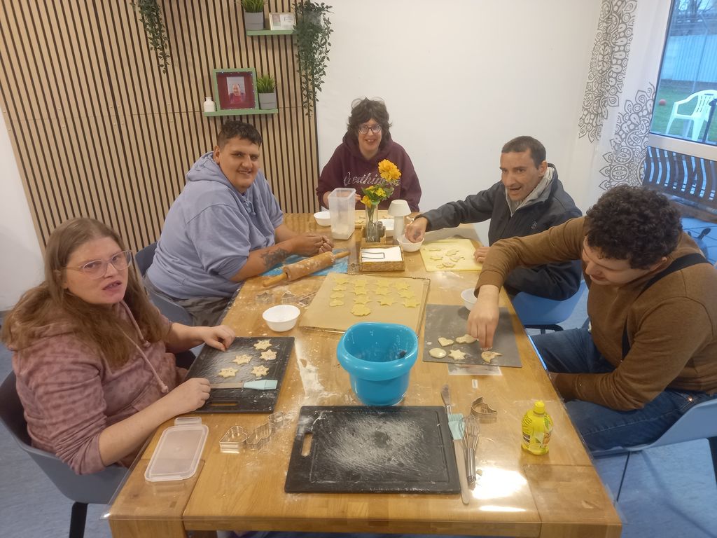 Fünf Bewohner*innen der Gruppe 2 haben das diesjährige Backen von Plätzchen in Angriff genommen!Die motivierten Klienten haben dabei, ihre Kreativität und Backkünste unter Beweis gestellt. Mit Zuckerstreuseln, Zuckerguss und Teigkleckselei wurde es ein Back-Event der süßen Art! Die Stimmung war super, die Klienten waren aufgeregt und die Backzutaten standen bereit.