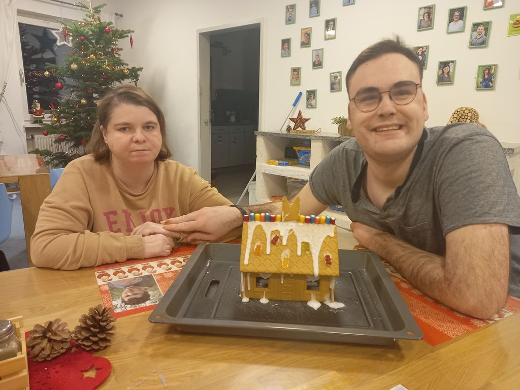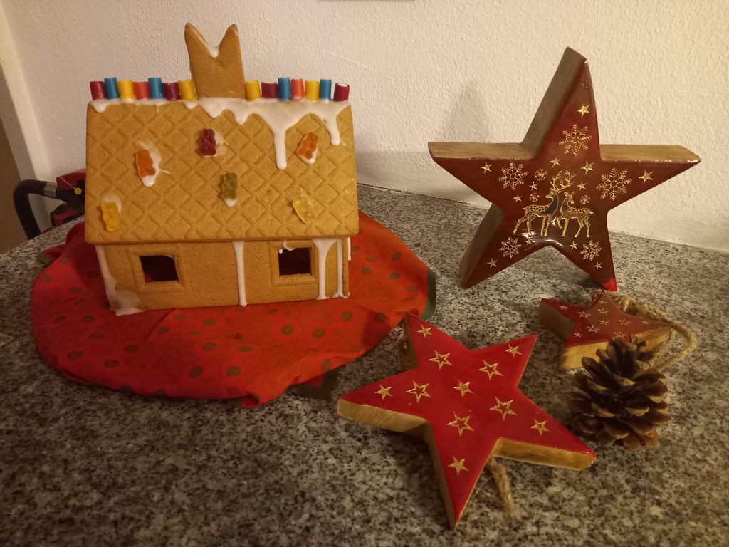 Ein „Knusperhäuschen“ in liebevoller Handarbeit.Mit viel Zuckerguss, Gummibärchen und ganz viel Liebe gestalteten die Bewohner*innen unserer Gruppe 2, ein wunderschönes Lebkuchenhäuschen. Von der Planung, bis zum fertigen Häuschen waren einige Zwischenschritte notwendig, aber es hat sich gelohnt!
