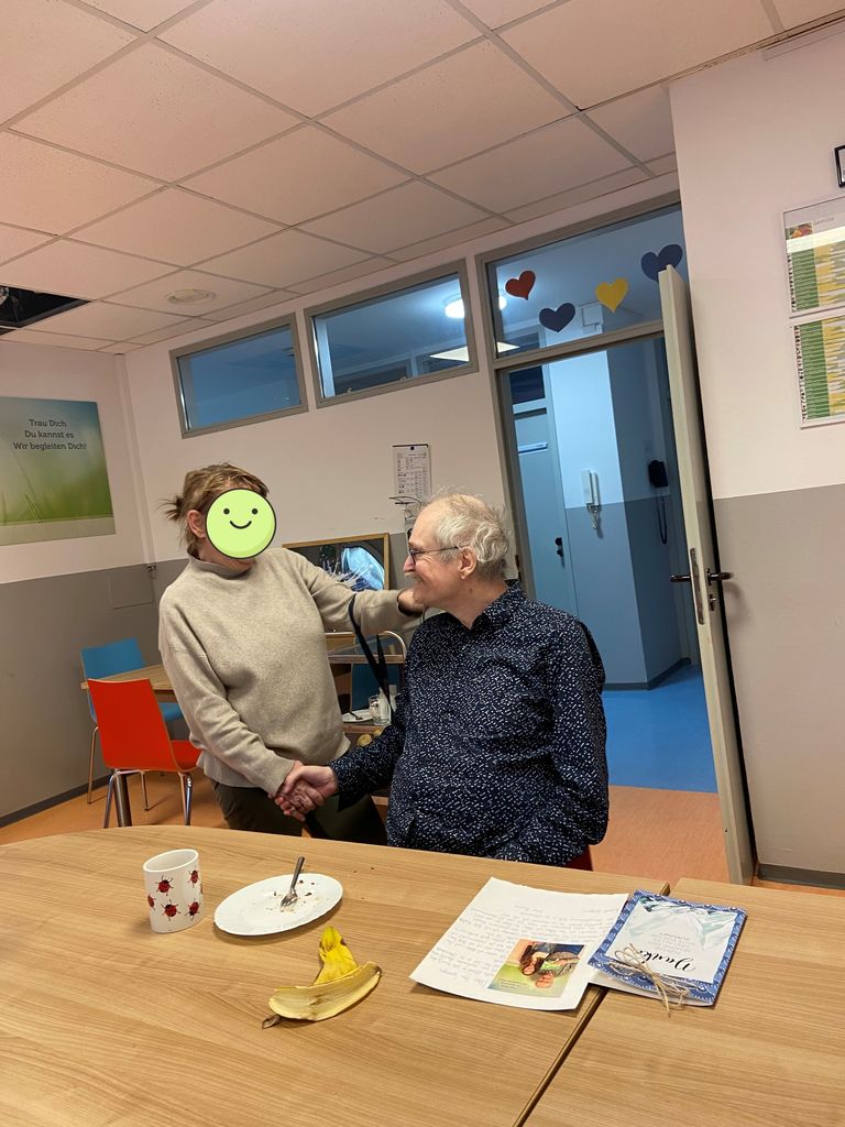 Nach vielen gemeinsamen Jahren verabschieden wir einen langjährigen Bewohner aus unserer Einrichtung. Ein Abschied, der mit schönen Momenten, Begegnungen und kleiner Besonderheiten gestaltet wurde.Über viele Jahre hinweg war der Bewohner ein fester Teil unserer Gemeinschaft. Zum Abschied wurde ein gemeinsamer Brunch organisiert. Am NAchmittag folgte ein gemütliches Beisammensein bei Kaffee und Kuchen - mit seinem Lieblingskuchen, einem selbst gebackenen Käsekuchen. Der Abschied war geprägt von schönen Gesprächen, gemeinsamen Erinnerungen und guten Wünschen für seinen weiteren Weg. Wir blicken dankbar auf die gemeinsame Zeit zurück und wünschen ihm für die Zukunft alles Gute!