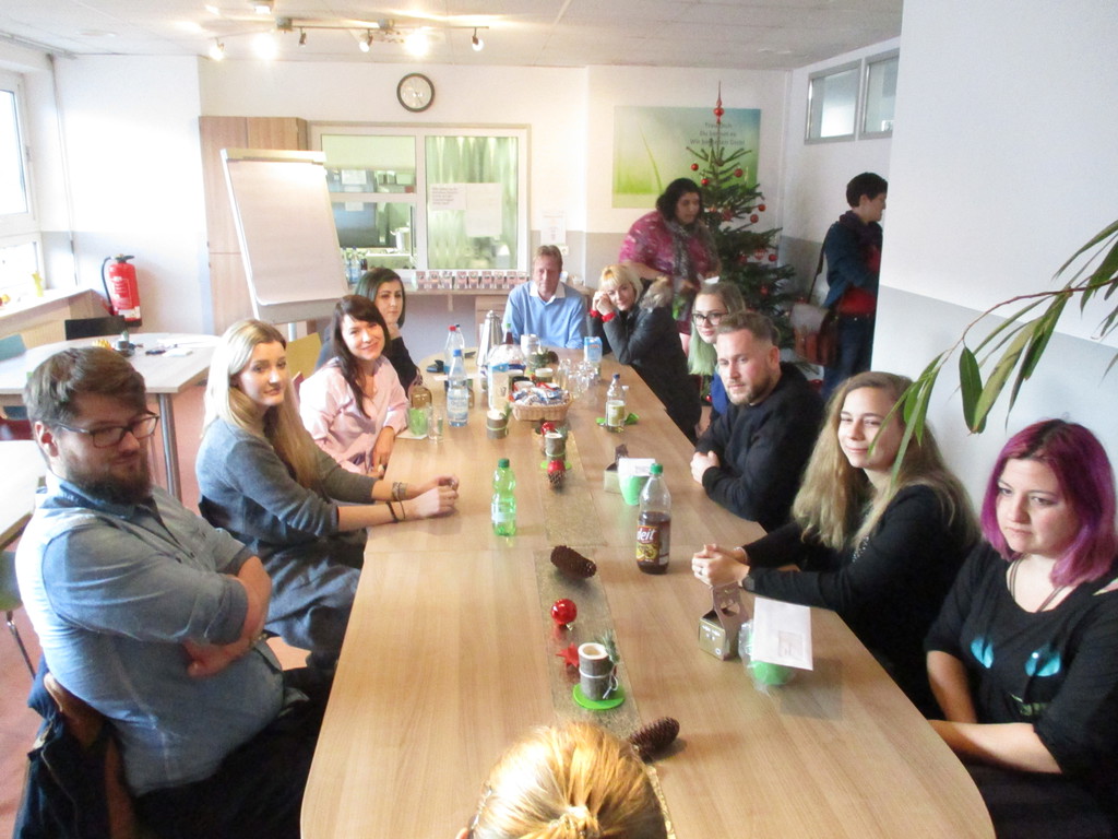 Am Dienstag, den 18.12.2018, trafen sich fast alle Mitarbeiter der Gärtnerstraße im Bistro zum alljährlichen Jahresabschlussteam. Anschließend wurde köstlich zu Abend gegessen bei der Mitarbeiter-Weihnachtsfeier.Bei ausgelassener Stimmung verbrachten die Mitarbeiterinnen und Mitarbeiter fast einen ganzen Tag ohne Bewohner. Der Einrichtungsleiter Hr. Masche sagte ein paar Worte über das vergangene Jahr und die zuständige Mitarbeiterin für den Gesundheitszirkel Fr. Schmailzl reflektierte auch noch mal die vergangenen oder noch laufenden bzw. geplanten Prozesse zur Verbesserung der Gesundheit am Arbeitsplatz. Jeder Mitarbeiter bekam ein kleines Präsent zu Weihnachten von der Firma. Danach ist eine kurze spielerische Reflexionsrunde über das vergangene Jahr durchgeführt worden. Außerdem ging es um die Wünsche und Vorstellungen für das kommende Jahr 2019. Der krönende Abschluss war ein Quiz über die Bewohnerinnen und Bewohner, sowie auch über Mitarbeiterinnen und Mitarbeiter durchgeführt worden, welches unser Fachdienst Fr. Lutz ausgearbeitet hat.