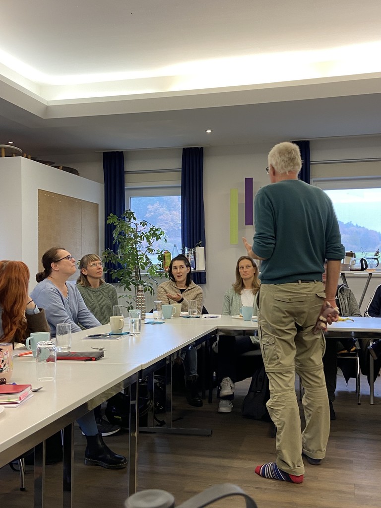 Am 6. November fand in Lichtenau eine gemeinsame Schulung der Mitarbeiter*innen beider Einrichtungen statt. Unter der Leitung von Tilmann Rentel ging es um die Grundlagen der idiolektischen Gesprächsführung – eine Methode, die Kommunikation auf neue, respektvolle Weise erlebbar macht.Am 6. November durften wir gemeinsam mit unseren Kolleg*innen aus Lichtenau an einer ganztägigen Fortbildung zum Thema Idiolektik teilnehmen. Geleitet wurde die Schulung von Tilman Rentel, der uns methodisch und praktisch in die idiolektische Gesprächsführung einführte.