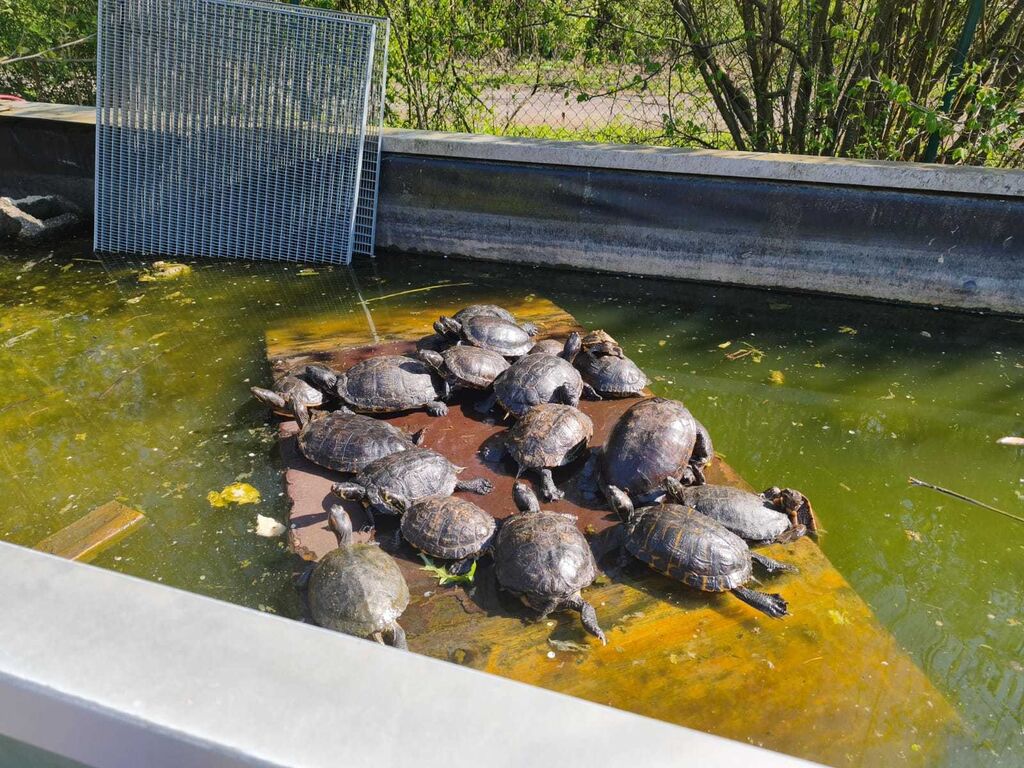 Schon beim Ankommen gab es viel zu entdecken: Schildkröten, die sich dicht an dicht in der Sonne wärmen, ein neugieriger Storch, elegante Greifvögel und eine beeindruckende Eule mit wachem Blick.