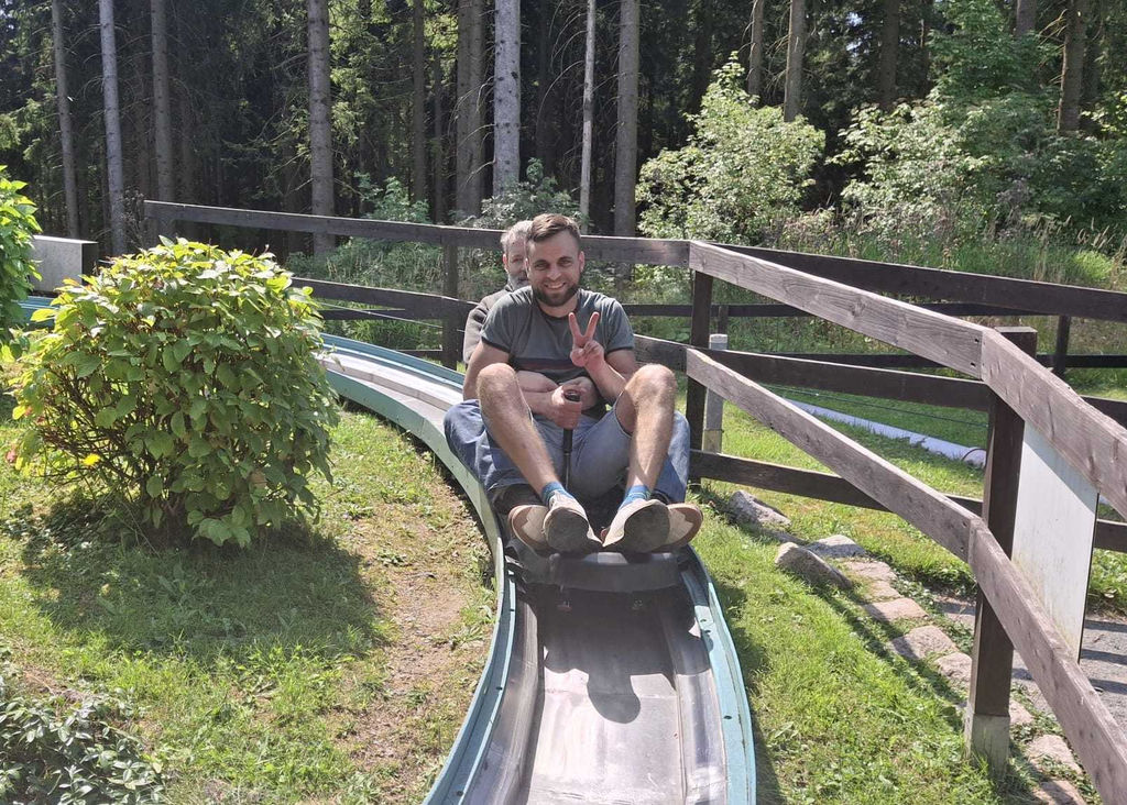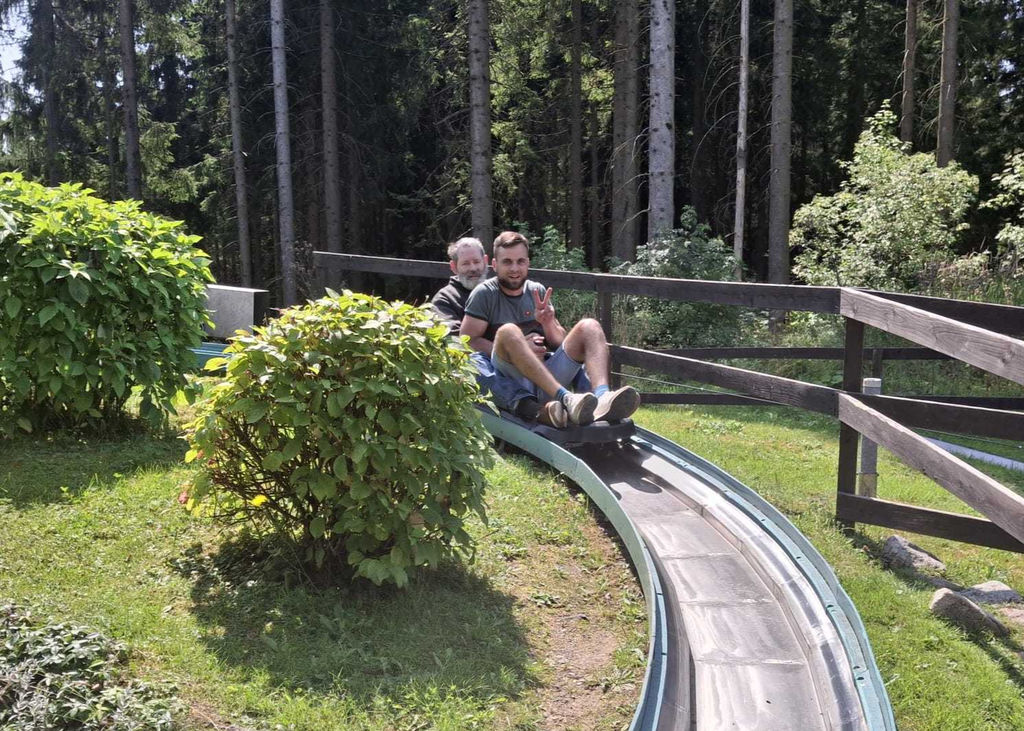 Bei täglichen Spaziergängen waren alle regelmäßig mit dabei und genossen die Natur rund um Schöneck. Auch sportliche und spaßige Aktivitäten standen auf dem Plan: Ein Besuch im Hallenbad, ein Ausflug ins Freibad sowie eine spannende Runde Minigolf. Ein ganz besonderes Highlight war der gemeinsame Ausflug zur Sommerrodelbahn – hier nahmen alle Bewohner teil und hatten sichtlich Freude an der schnellen Fahrt.