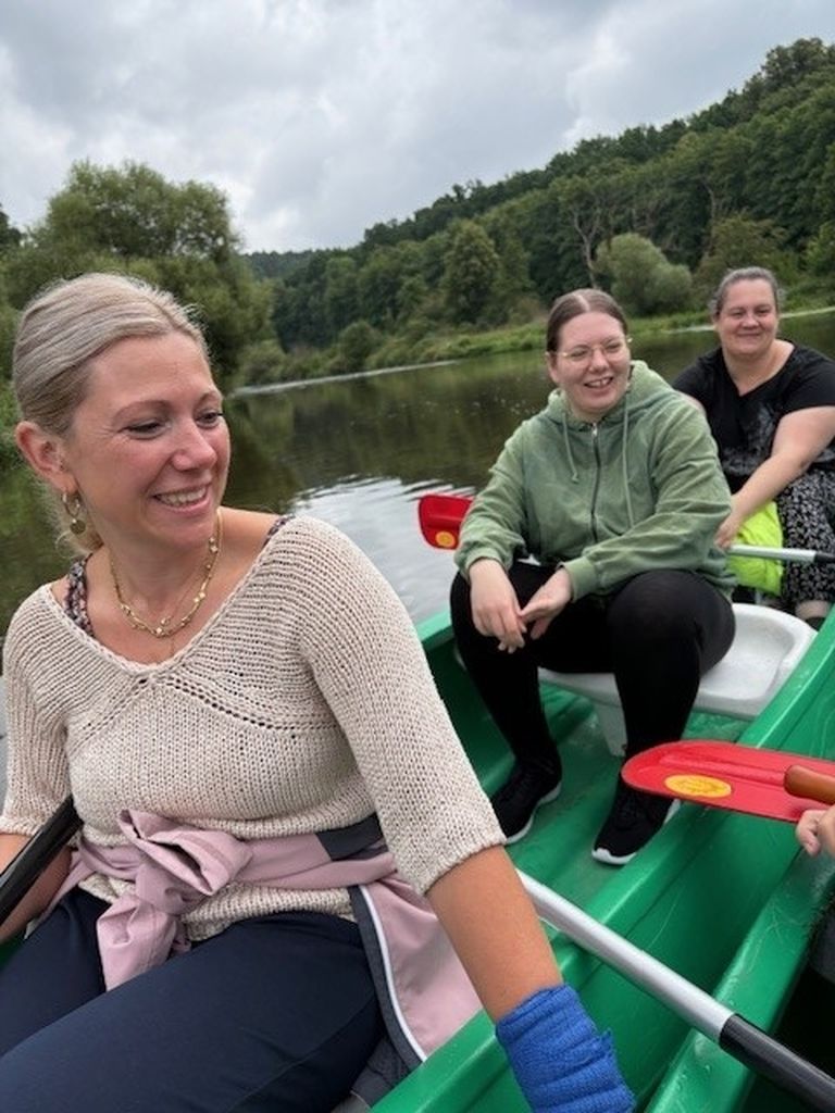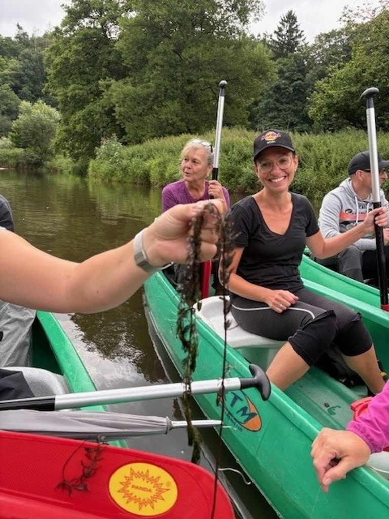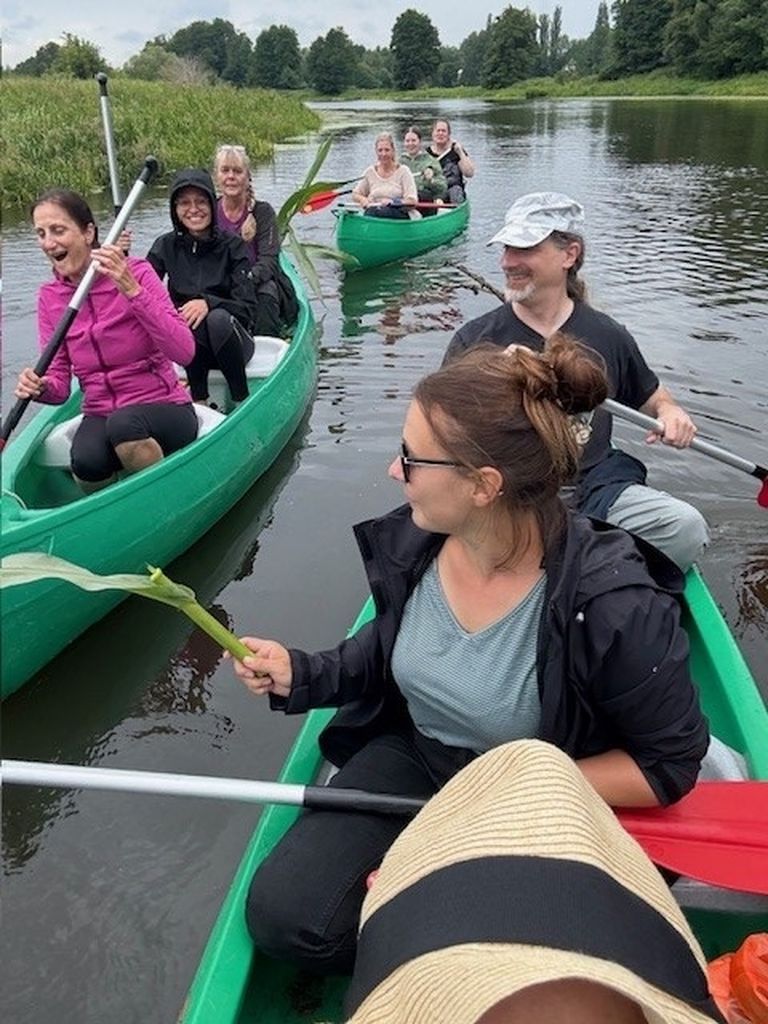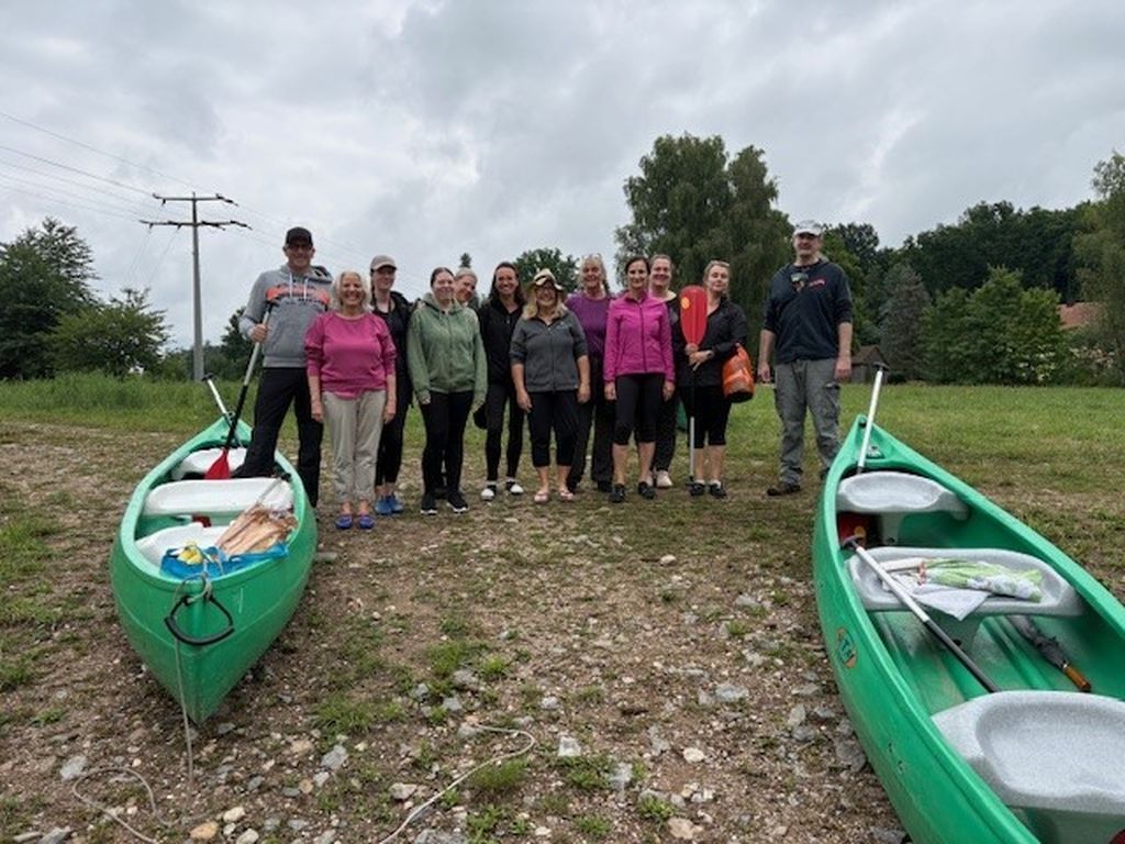 „Mal treiben lassen im Naabtal“ – unser Motto des diesjährigen Mannschaftsausflugs Feistelholz/Oberköblitz. Dem reißenden Alltagsstrom entfliehen und mal ruhigere Gewässer aufsuchen. Das war nicht schlecht. Der Wettergott musste zuvor allerdings gerufen werden, weil ein paar Tage zuvor auf eine Hitzewelle mit Niedrigwasser eine Kalt-Schlecht-Wetter-Front mit Starkregen folgte. Aber, wir wären sowieso gefahren, und deshalb blieb dem Wettergott nichts anderes übrig als uns perfekte Kanu Verhältnisse zu schenkenUnsere Ankunft am Ziel war uns auch sicher, denn eigentlich konnte man nicht wirklich viel falsch machen, wenn man an dem Tag einfach nichts tat, gell Susi?! Flussabwärts ging es automatisch. Die Boote gut gefüllt …. mit Mitarbeitern …. und Essen und Trinken. So trieben vier Kanus an diesem Donnerstag von Luhe aus flussabwärts in Richtung Süden. Auf einem dahinschleichendem Boot saß eine mysteriöse Frau in schwarz mit Kapuze. Vielleicht Schmuggelware von den Piraten G und V? In einem anderen Boot drei Experten, die die Stromschnellen rückwärts fuhren, weil es vorwärts jeder kann und langweilig ist. Übrigens waren das auch die, die alles „anfuhren“ und kenterten was ihnen in die Quere kam. Dann gab es noch das ZICK ZACK Boot, das gewiss weiter fahren wollte als alle anderen. Zum Glück war an dem Tag die Naab nicht so breit. Sonst wären sie wahrscheinlich heute noch unterwegs. Im vierten Boot war es sehr komfortabel. Es wurde das Essensboot genannt. Gepaddelt hat in diesem Boot …. fast jeder, soweit ich mich erinnern kann. Nach 5 ½ Stunden spülte uns das Wasser an das Pfreimder Naabufer, vollzählig, ohne Mann über Bord. Das musste schließlich bei Pizza und Pasta gefeiert werden.