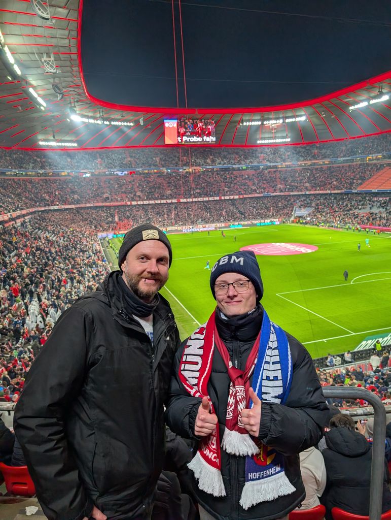 Für einen jungen Erwachsenen aus dem Kleinheim Pfreimd wurde dieser Sonntag zu einem unvergesslichen Erlebnis: Wir besuchten gemeinsam das Bundesliga-Heimspiel gegen die TSG Hoffenheim. Ein Fußballfest der Extraklasse, nicht nur für Bayern-Fans sondern auch für Fußballbegeisterte.Bei strahlendem Februar-Wetter und einer leckeren Stadionwurst zur Stärkung verfolgten wir ein torreiches Spiel. Der FC Bayern zeigte sich in Bestform und feierte einen souveränen 5:1 Sieg. Besonders die Treffer von Harry Kane und der Hattrick von Luis Diaz sorgten für Riesenjubel auf den Rängen - und natürlich auch bei uns.